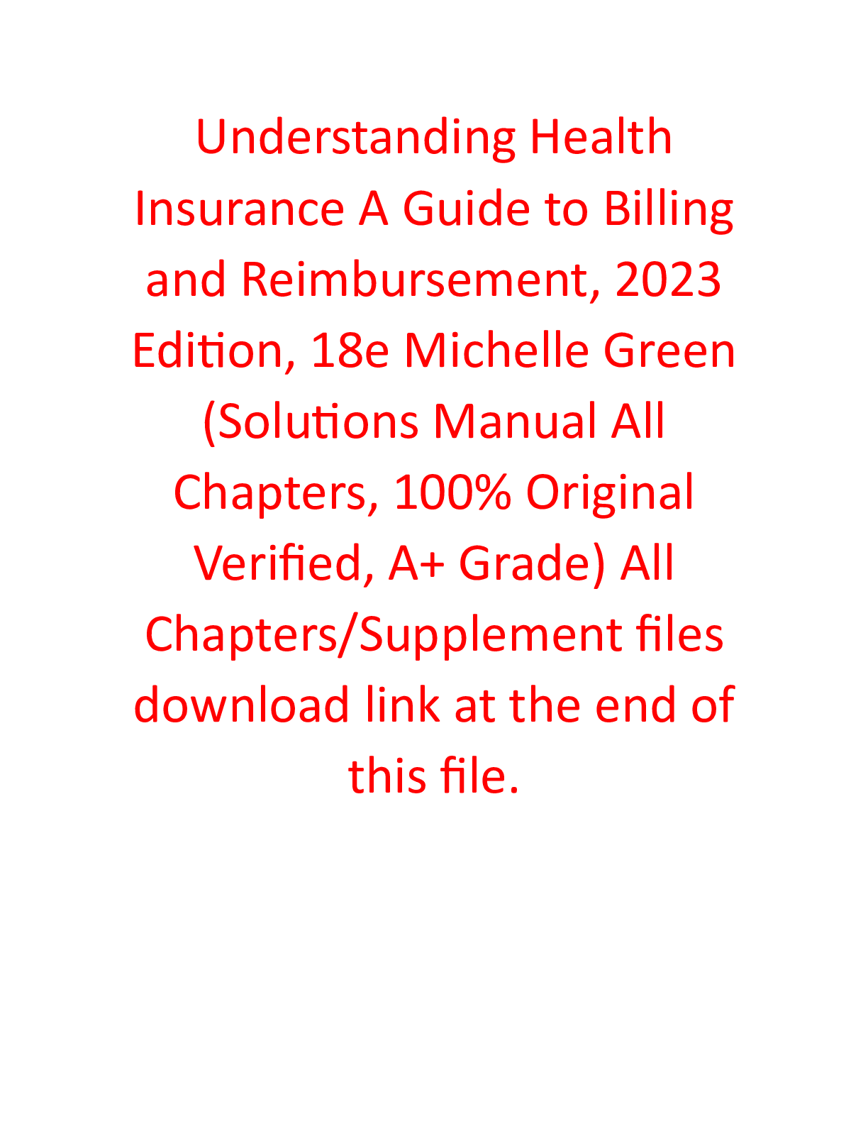 healthcare > SOLUTIONS MANUAL > Solutions Manual for Understanding Health Insurance A Guide to Billing and Reimbursement, 2023 Edition 18th Edition By Michelle Green (All Chapters, 100% Original Verified, A+ Grade)