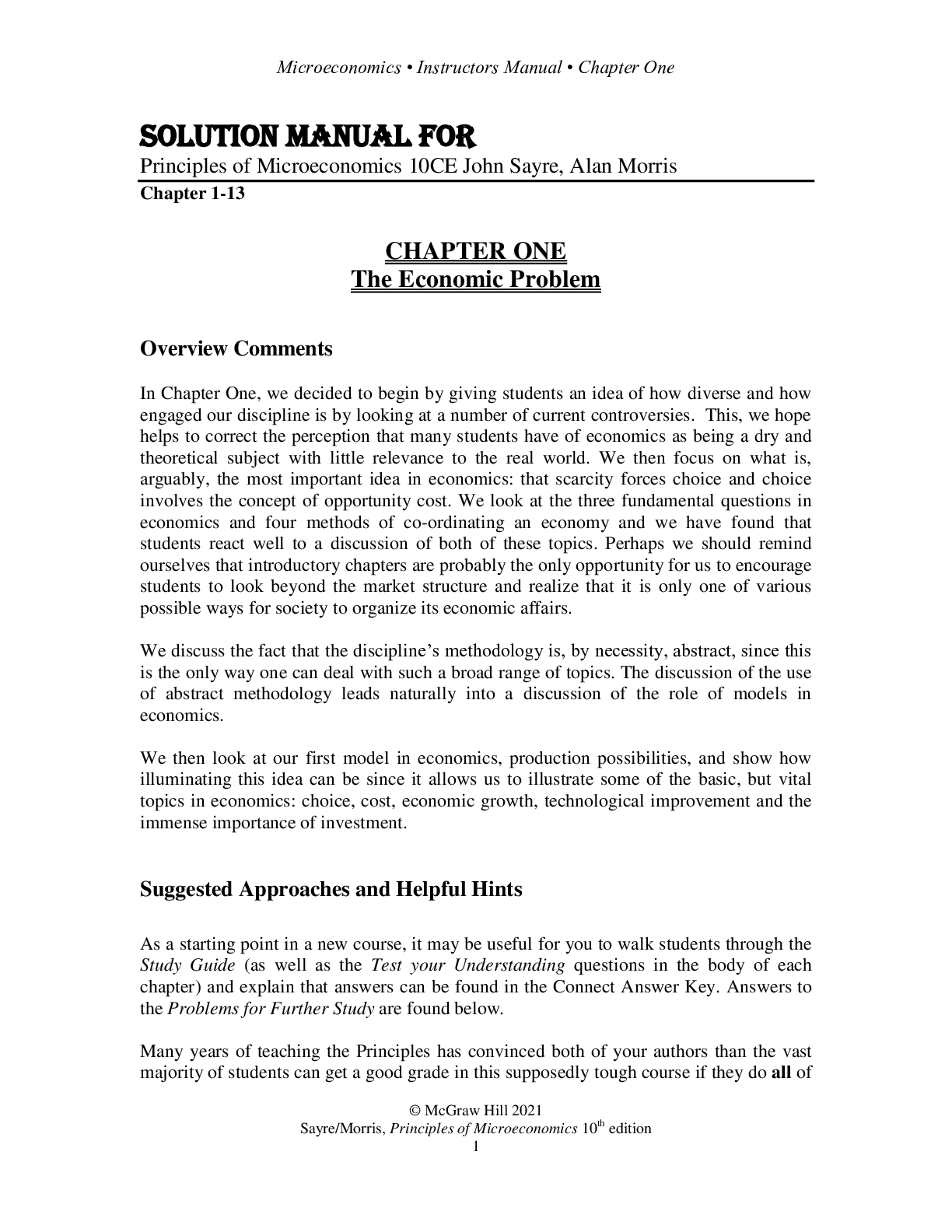 Business > SOLUTIONS MANUAL > Solution Manual For Principles Of Microeconomics 10CE John Sayre, Alan Morris Chapter(1-13)