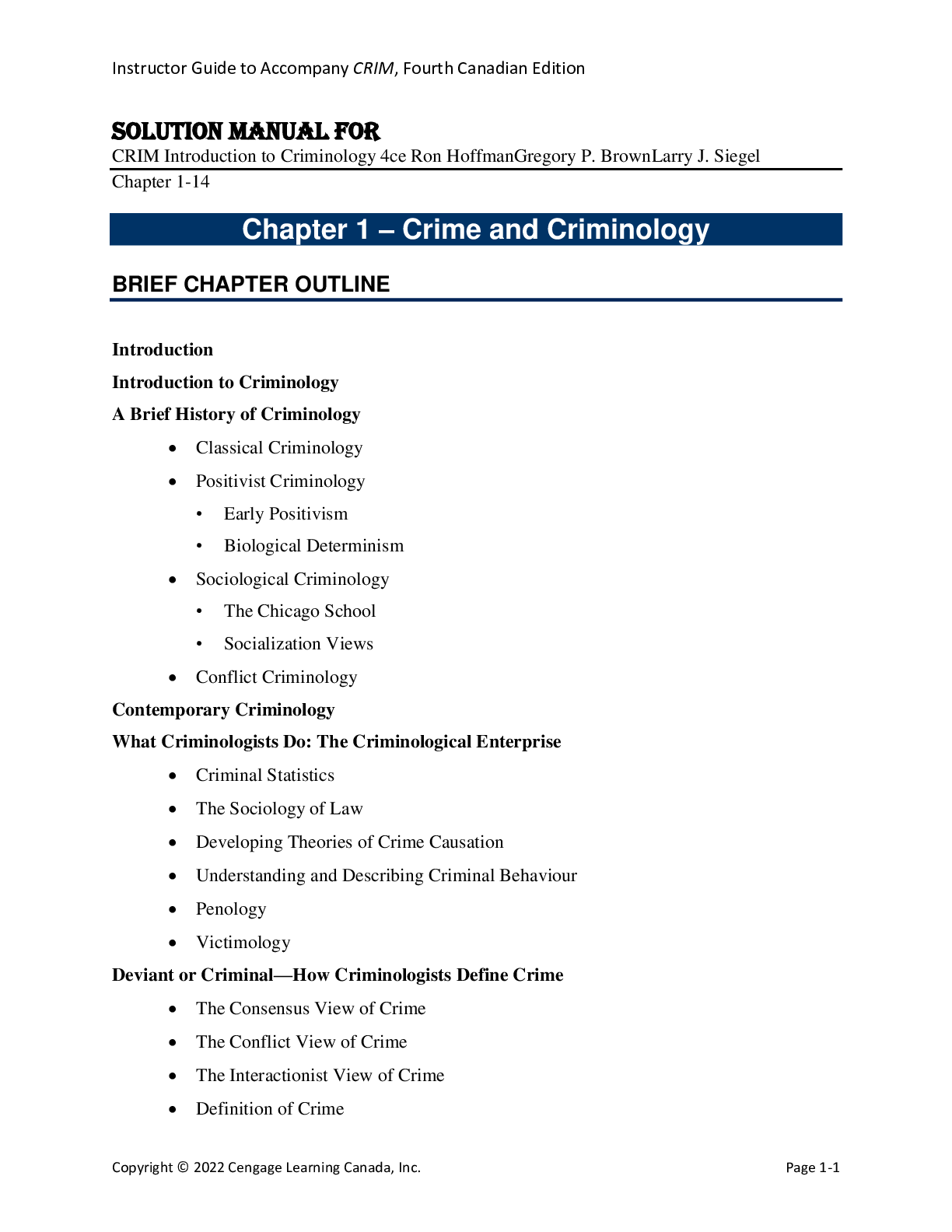 Business > SOLUTIONS MANUAL > Solution Manual for CRIM Introduction to Criminology 4ce Ron HoffmanGregory P. BrownLarry J. Siegel