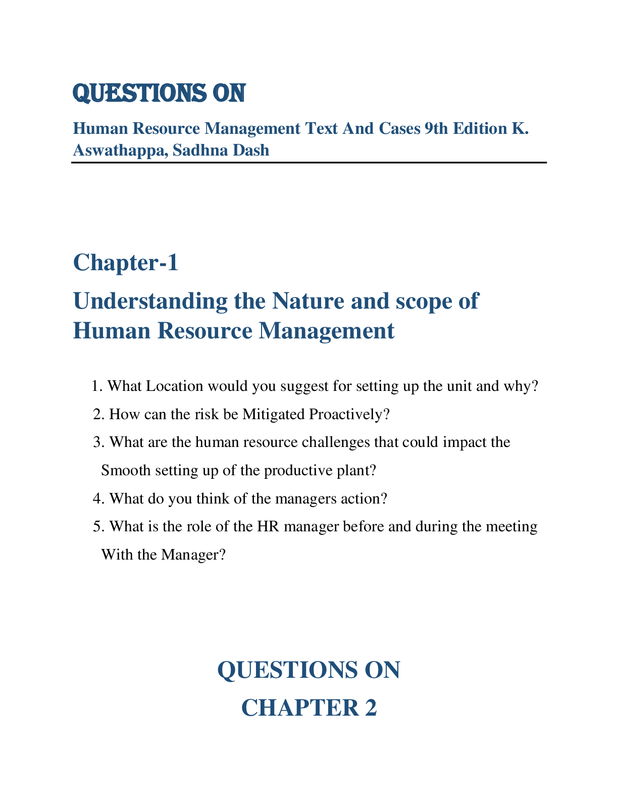 Business > SOLUTIONS MANUAL > Questions on Human Resource Management Text And Cases 9th Edition K. Aswathappa, Sadhna Dash