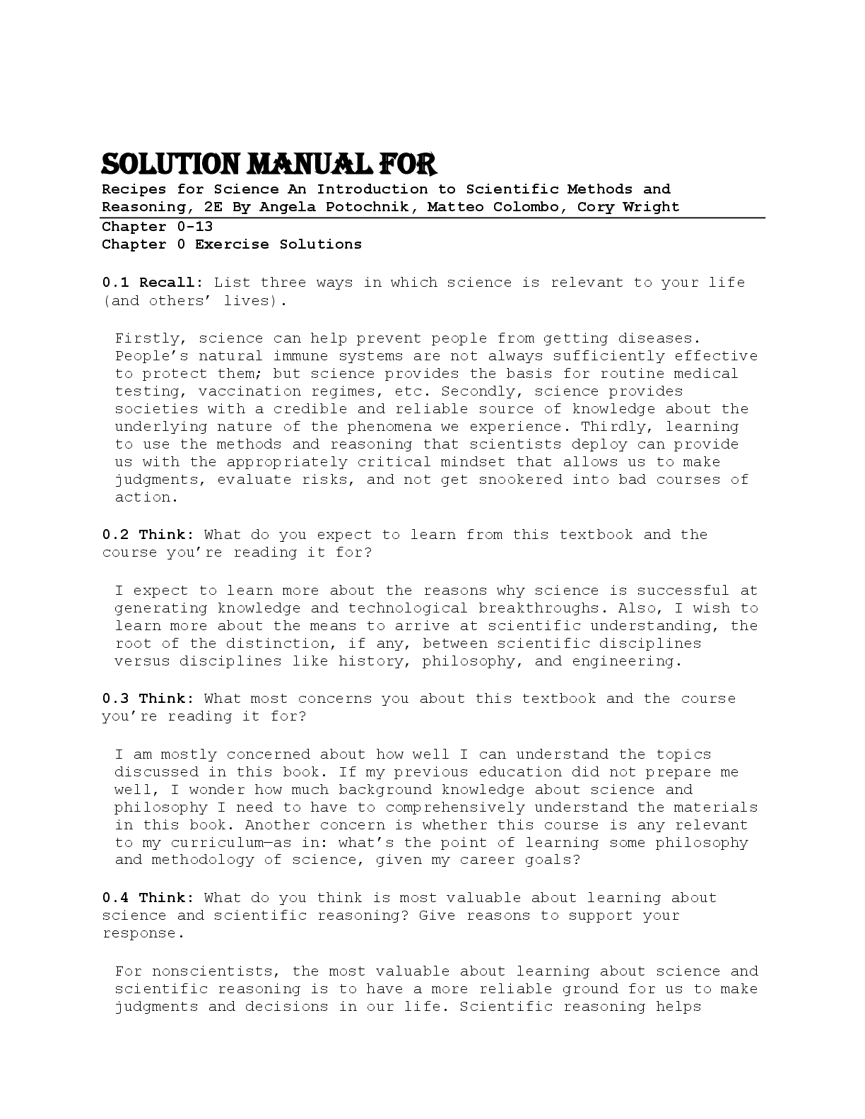 Business > SOLUTIONS MANUAL > Solution Manual For Recipes for Science An Introduction to Scientific Methods and Reasoning, 2nd Edition By Angela Potochnik, Matteo Colombo, Cory Wright