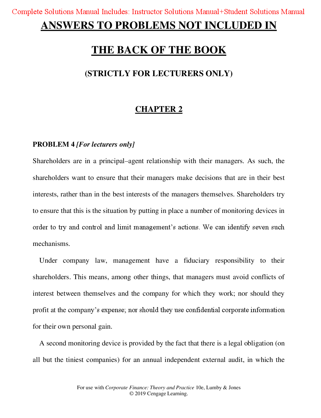 Finance > SOLUTIONS MANUAL > Solutions Manual for Corporate Finance Theory and Practice 10th Edition By Steve Lumby, Chris Jones