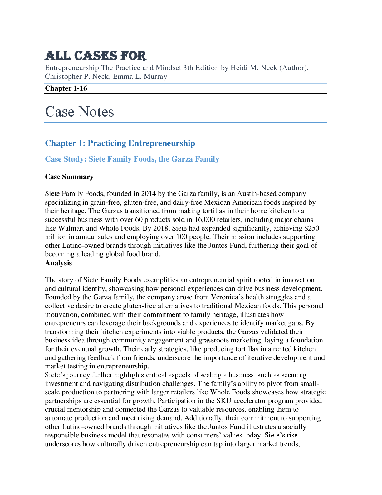 Business > SOLUTIONS MANUAL > All Cases For Entrepreneurship The Practice and Mindset 3th Edition by Heidi M. Neck, Christopher P. Neck, Emma L. Murray Chapter 1-16