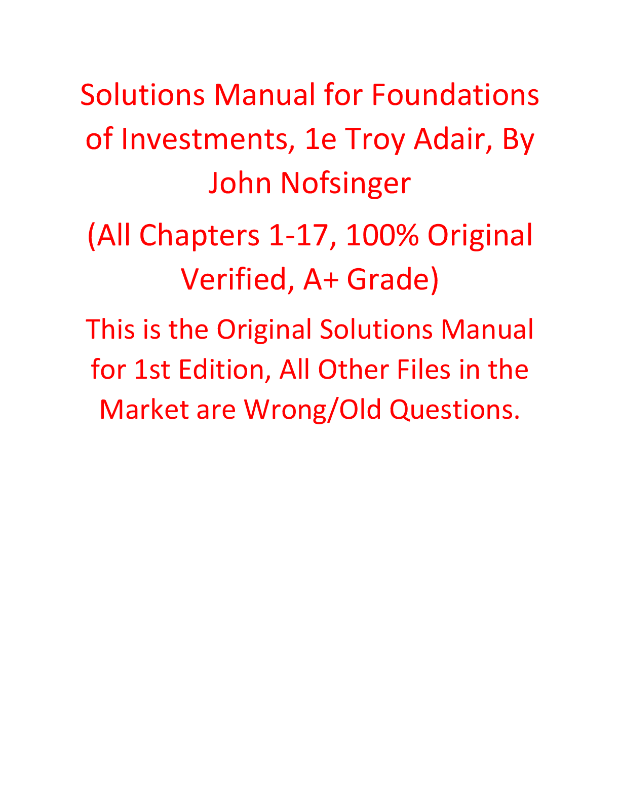 Business Management > SOLUTIONS MANUAL > Solutions Manual for Foundations of Investments, 1st Edition Troy Adair, By John Nofsinger (All Chapters 1-17, 100% Original Verified, A+ Grade)