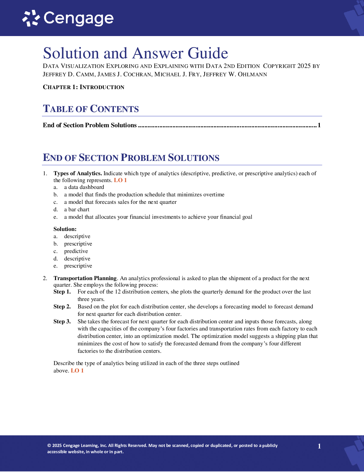 Education > SOLUTIONS MANUAL > Solutions Manual For Data Visualization Exploring and Explaining with Data 2nd Edition By Jeffrey Camm, James Cochran, Michael Fry, Jeffrey Ohlmann