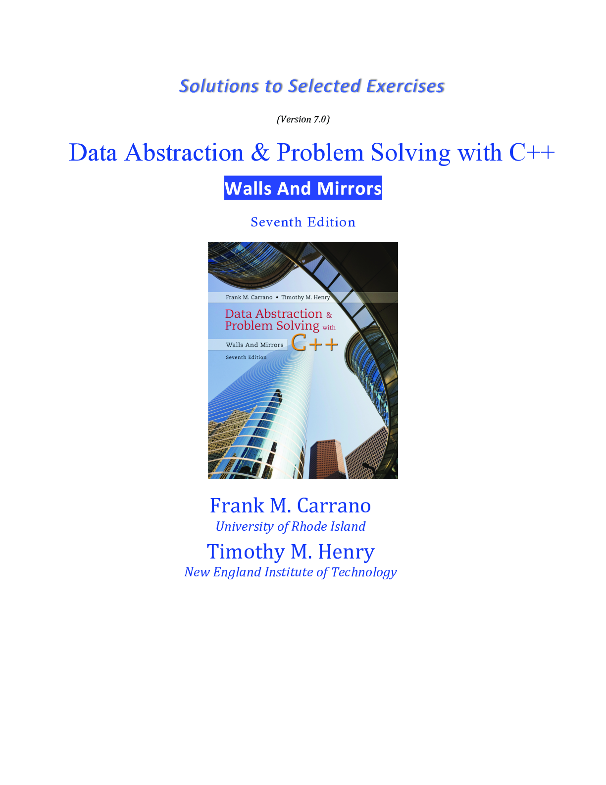 Education > SOLUTIONS MANUAL > Solution Manual For Data Abstraction & Problem Solving with C++ Walls and Mirrors, 7th edition Frank M. Carrano Exercise