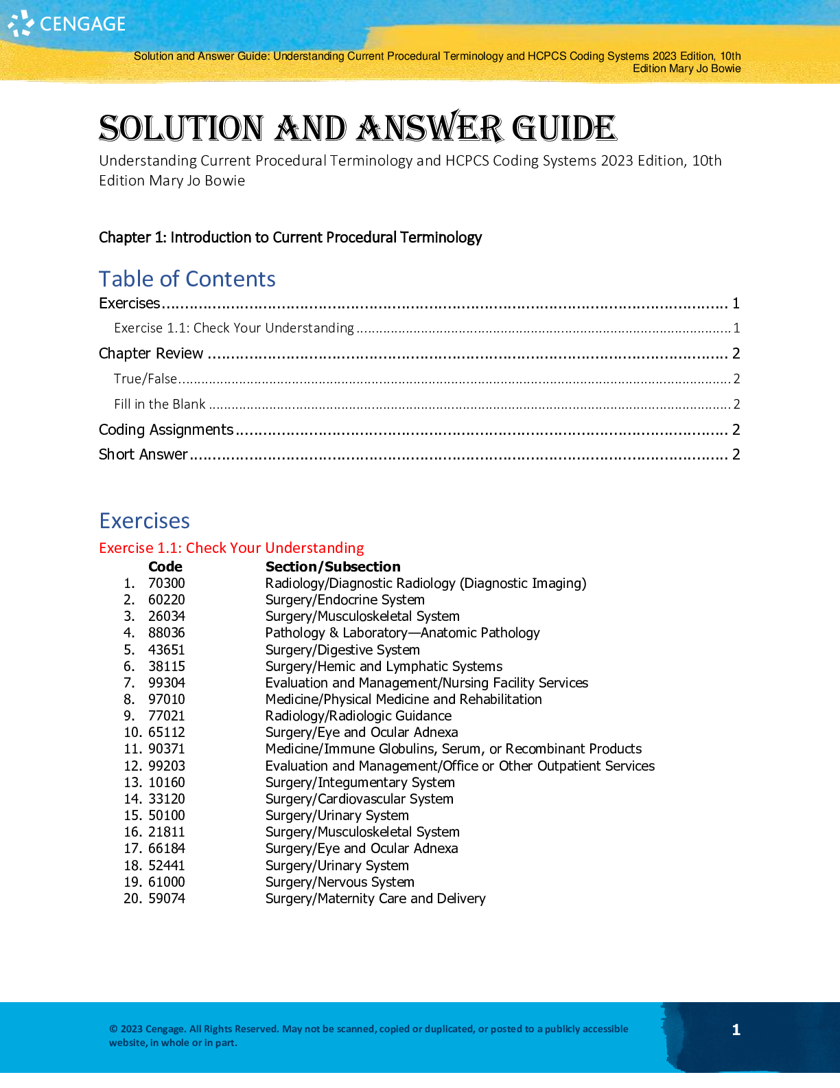 Business > SOLUTIONS MANUAL > Solutions Manual For Understanding Current Procedural Terminology and HCPCS Coding Systems 2023 10th Edition By Mary Jo Bowie