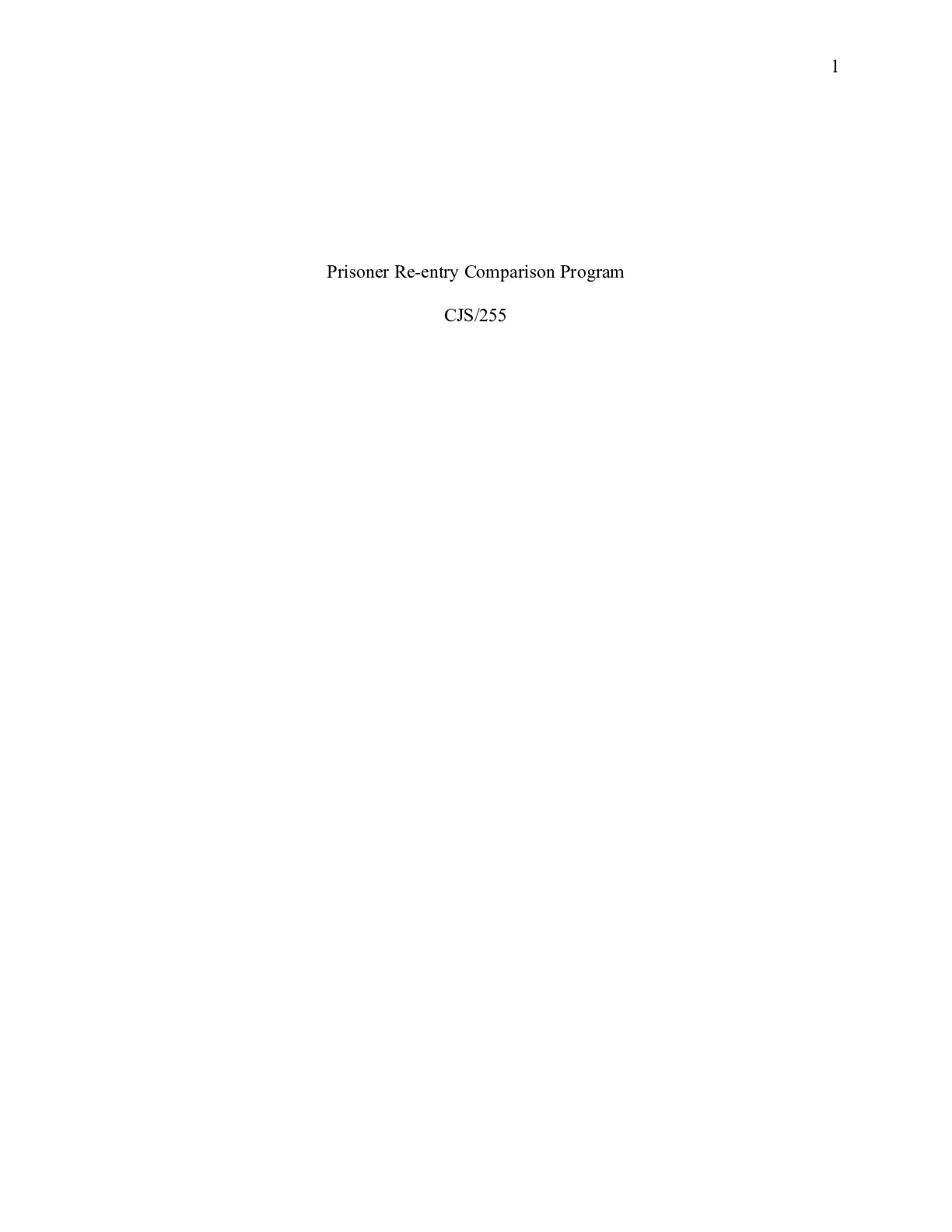 Business > CASE STUDY > Prisoner_Re_entry_Comparison_Program.doc Prisoner Re-entry Comparison Program CJS/255