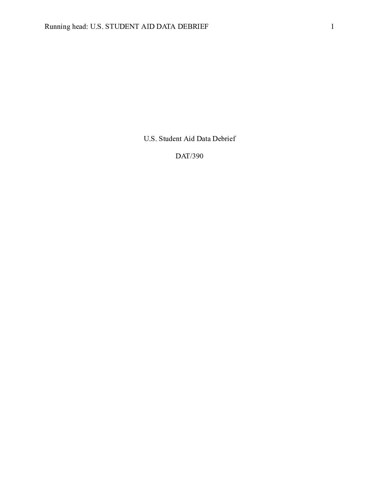 Business > CASE STUDY > U.S. Student Aid Data Debrief.docx U.S. Student Aid Data Debrief DAT/390 U.S. Studen