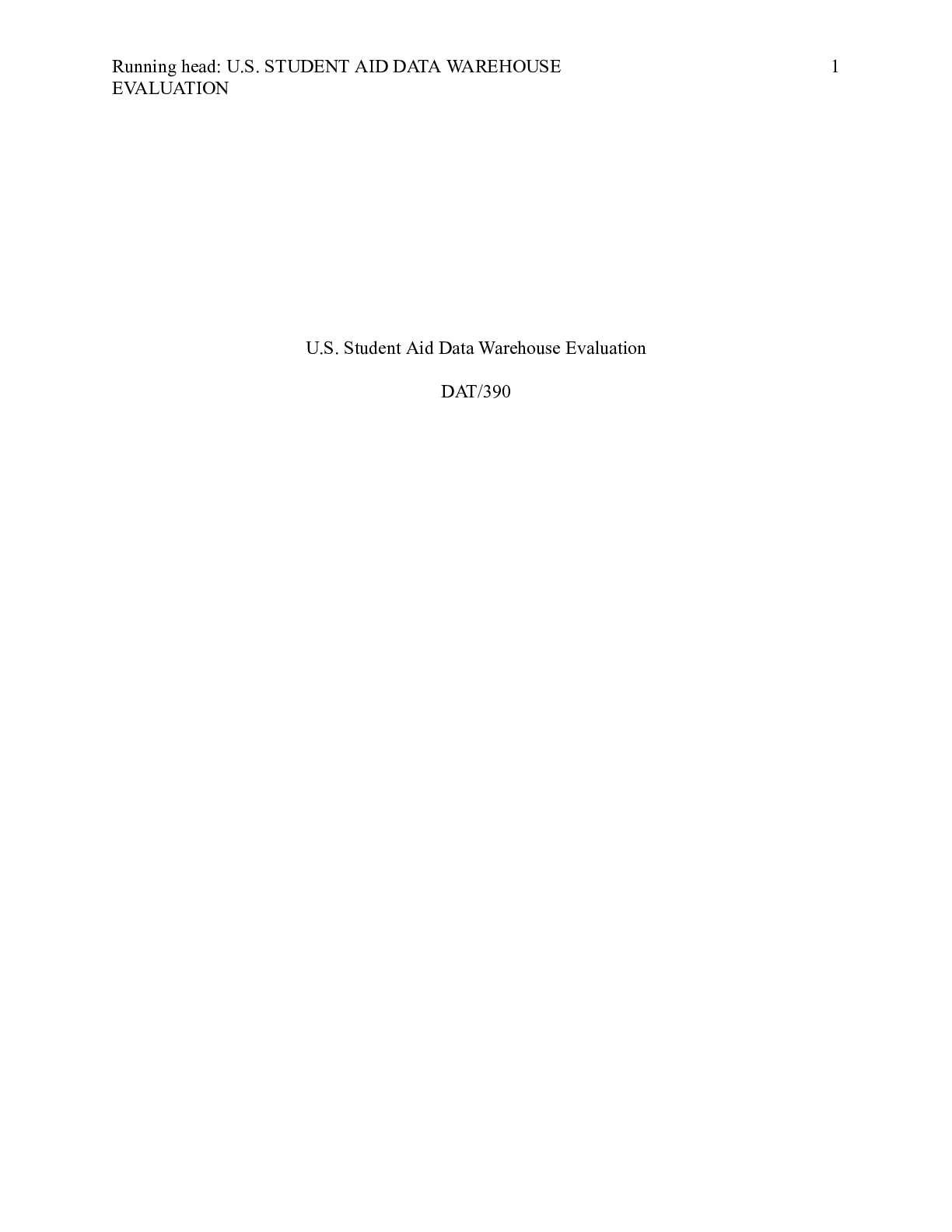Business > CASE STUDY > U.S. Student Aid Data Warehouse Evaluation.docx U.S. Student Aid Data Warehouse Evaluat