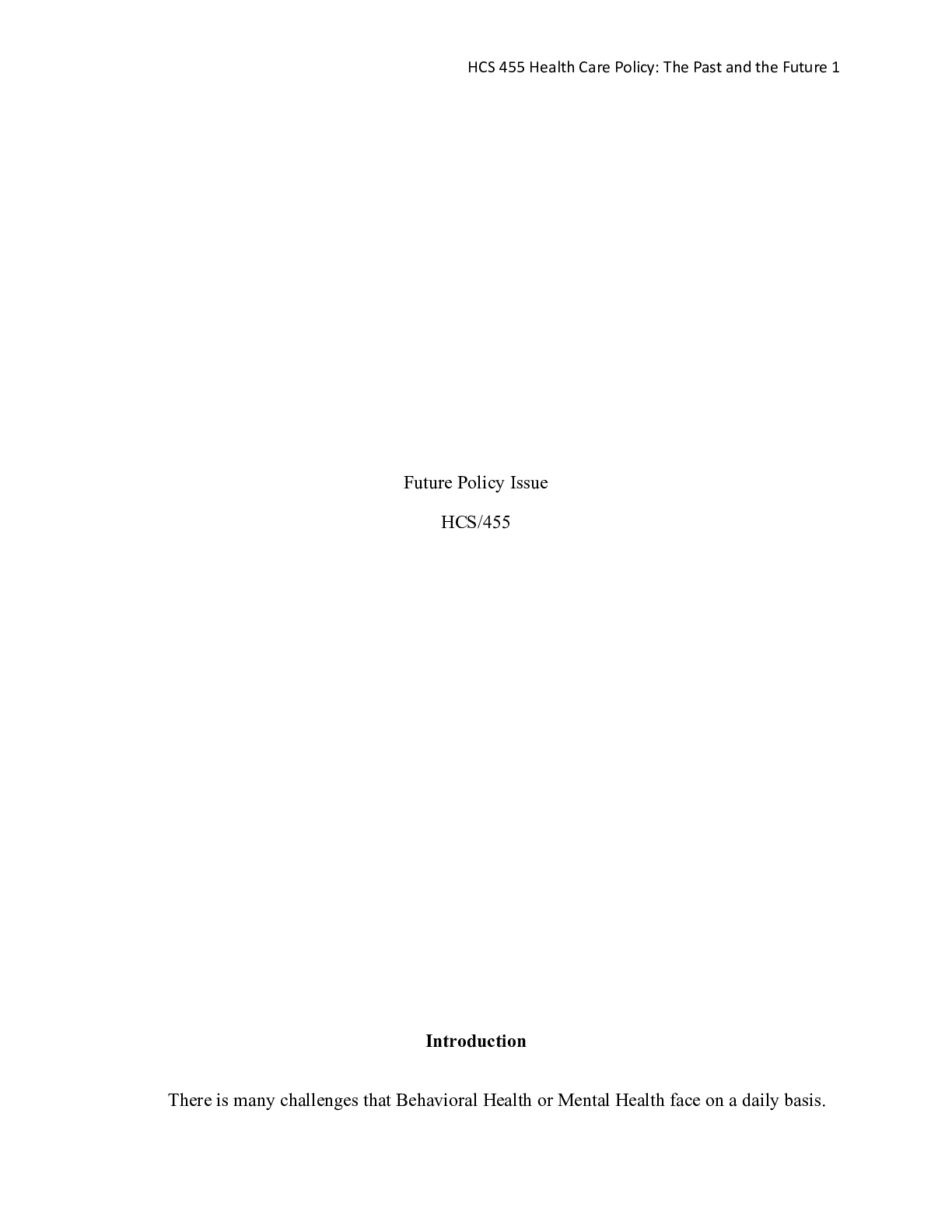 Business > CASE STUDY > week_5_Long.docx Future Policy Issue HCS/455 Introduction There is many challenges t