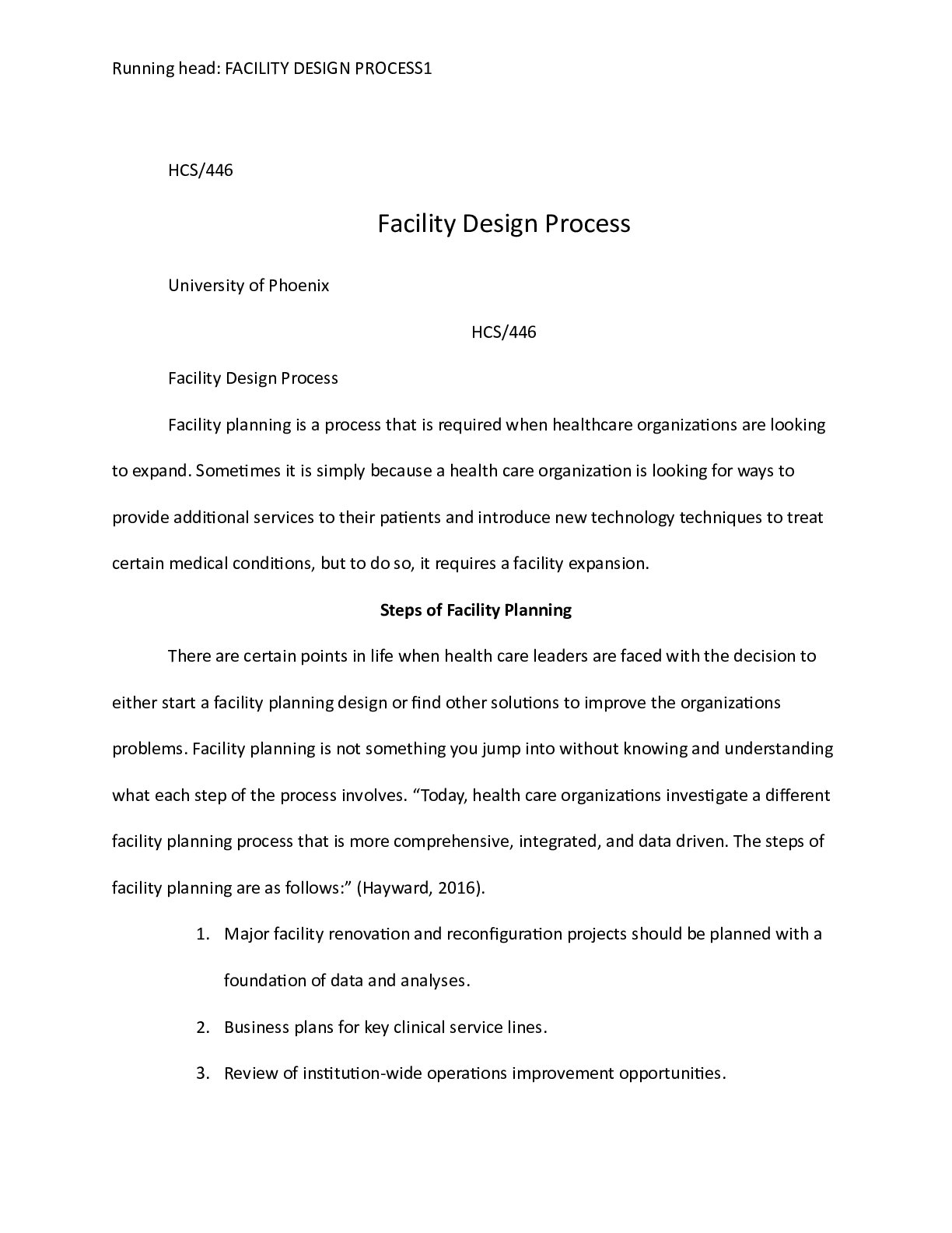 Business > CASE STUDY > FacilityDesignProcessWk1.docx HCS/446 Facility Design Process University of Phoenix