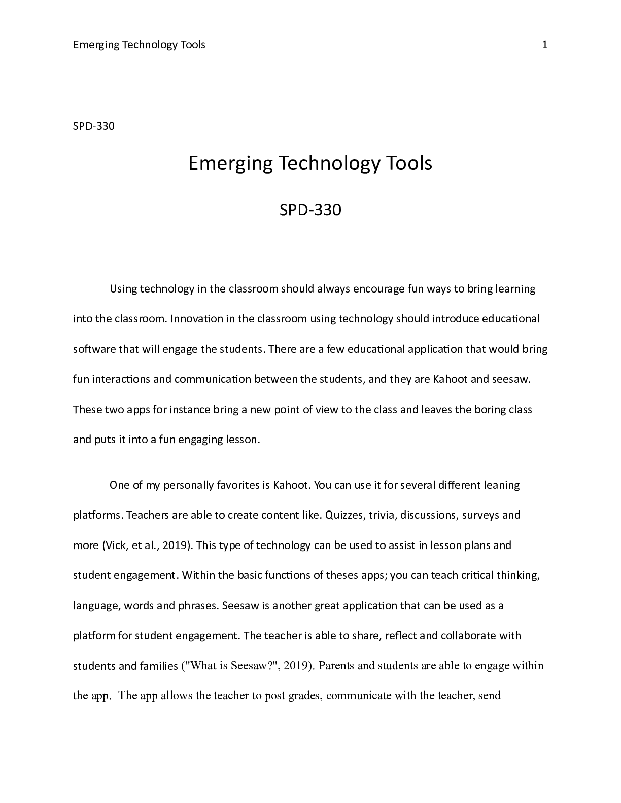 Business > CASE STUDY > Emerging_Technology_Tools.docx SPD-330 Emerging Technology Tools SPD-330 Using techn