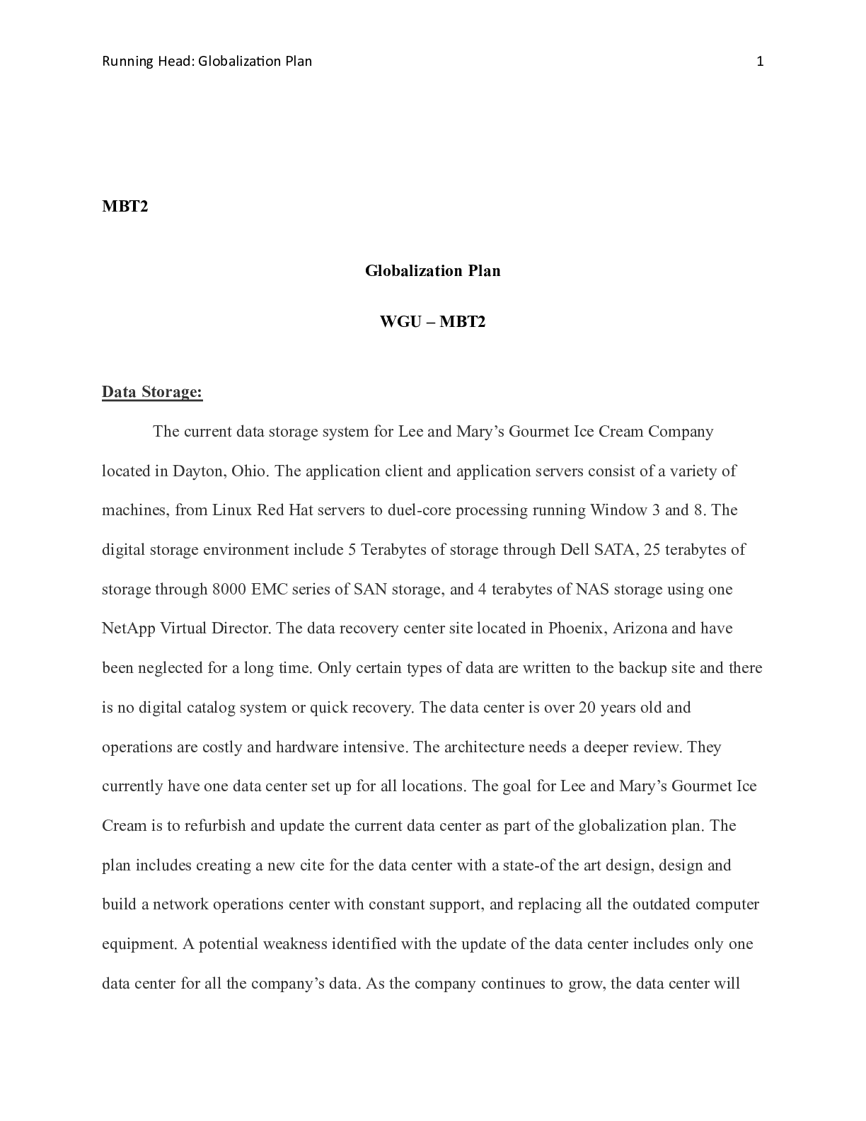 BusinessCASE STUDY  > _Case_MBT2_Paper.docx MBT2 Globalization Plan WGU “ MBT2 Data Storage: The current