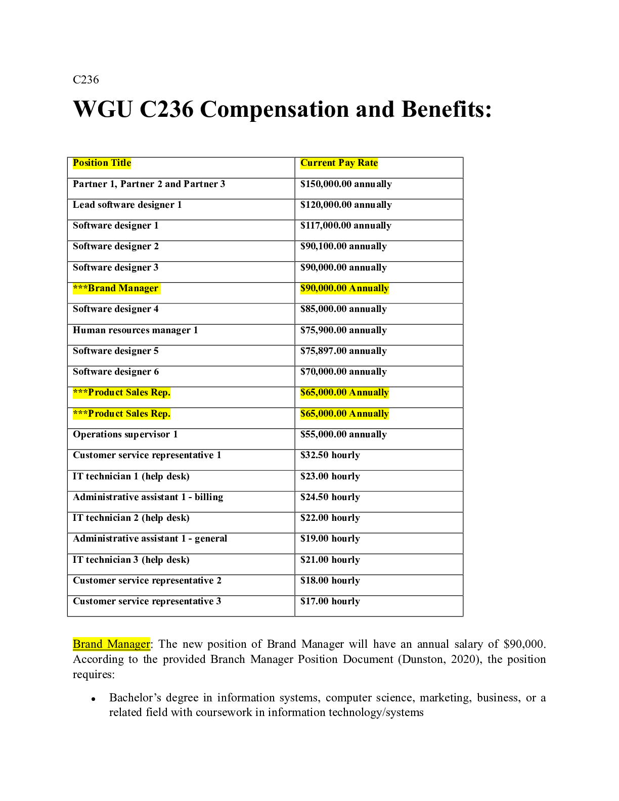BusinessCASE STUDY  > _Task_C236_Revised_.docx C236 WGU C236 Compensation and Benefits: Position Title Curr