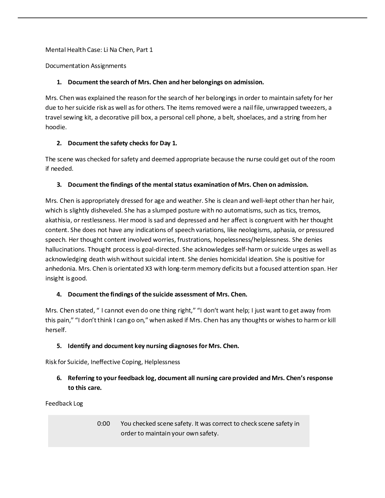 *NURSING > CASE STUDY > Feedback Log Mental Health Case - David Carter Part 1 and 2 Vsim - Complete Solutions