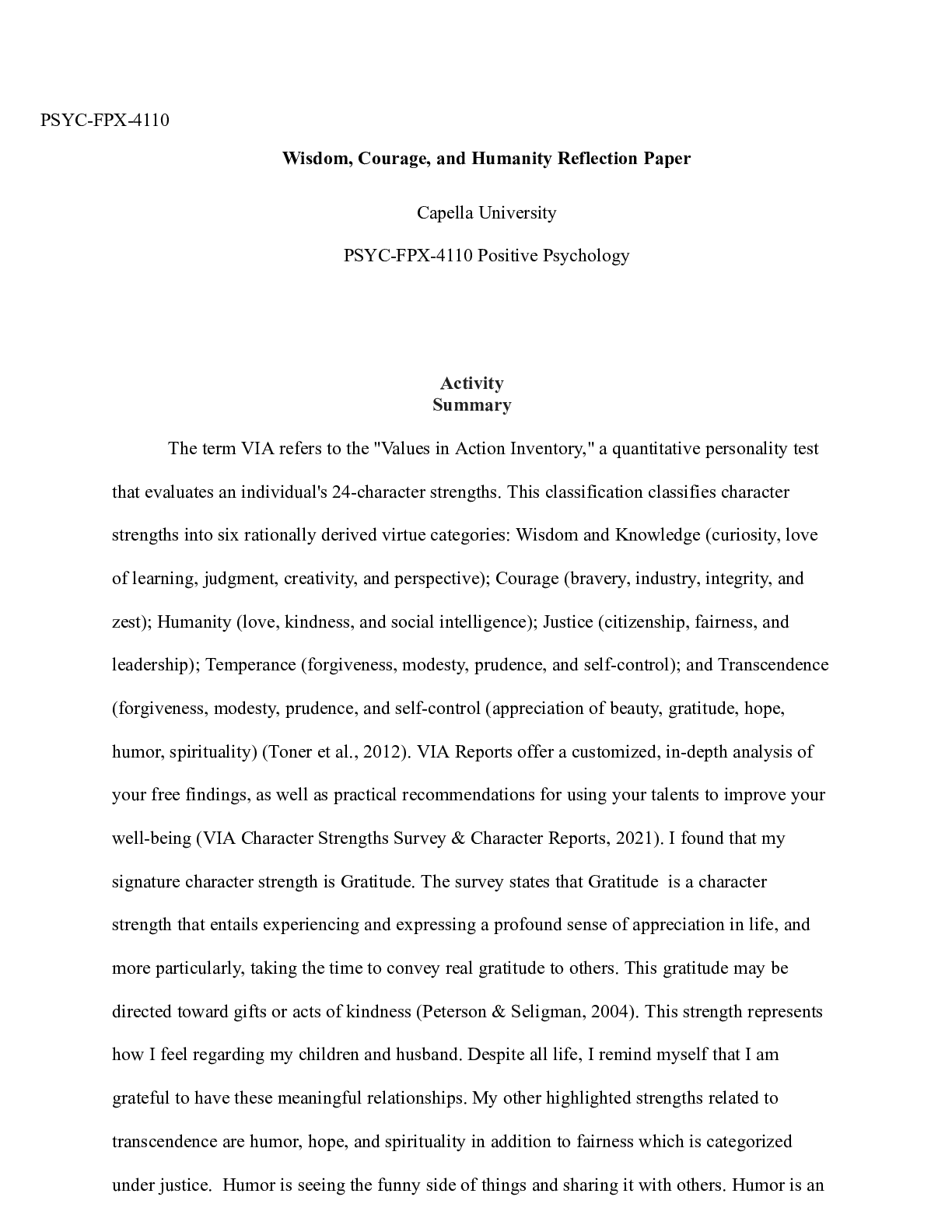 Business > CASE STUDY > PSY FP4110 ASSESSMENT 2 2.docx PSYC-FPX-4110 Wisdom, Courage, and Humanity Reflection Pa