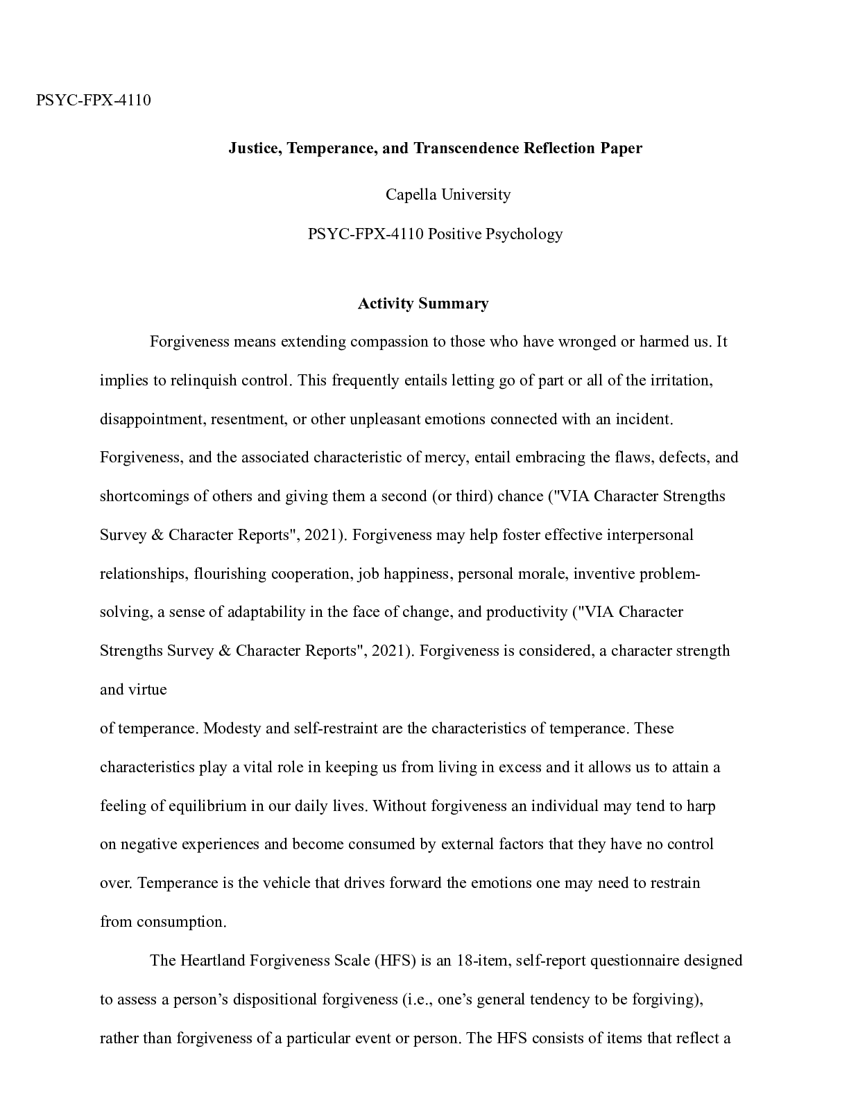 Business > CASE STUDY > PSY FP4110 ASSESSMENT 3 1.docx PSYC-FPX-4110 Justice, Temperance, and Transcendence Refl