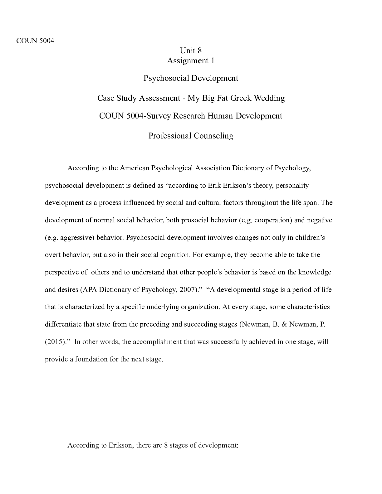 Business > CASE STUDY > Unit 8 Assignment 1.docx COUN 5004 Unit 8 Assignment 1 Psychosocial Development Case