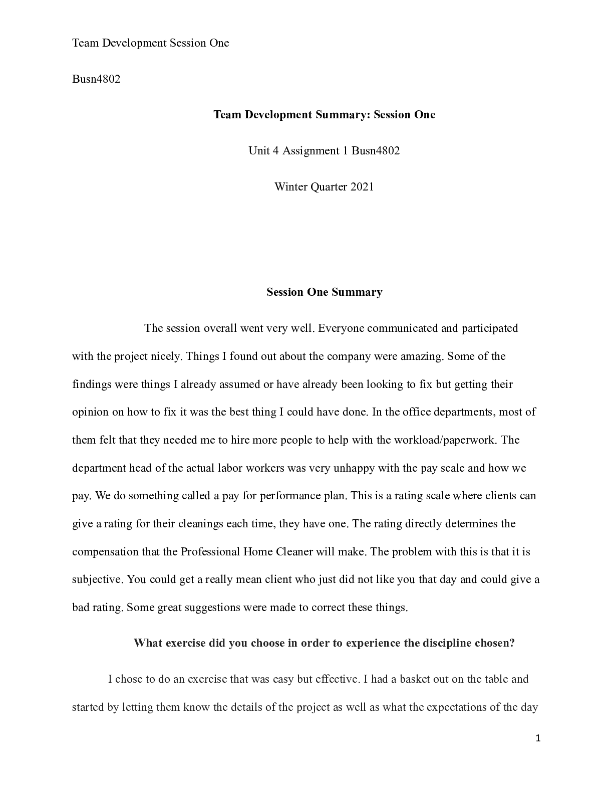 Business > CASE STUDY > Unit 4 Assignment 1.docx Busn4802 Team Development Summary: Session One Unit 4 Assignme