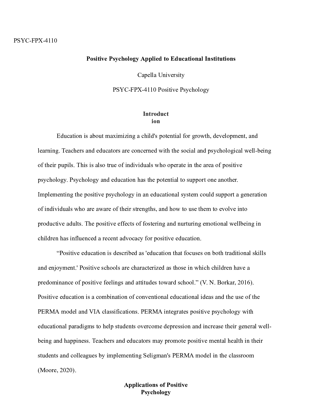 Business > CASE STUDY > PSY FP4110 ASSESSMENT 4 1.docx PSYC-FPX-4110 Positive Psychology Applied to Educational