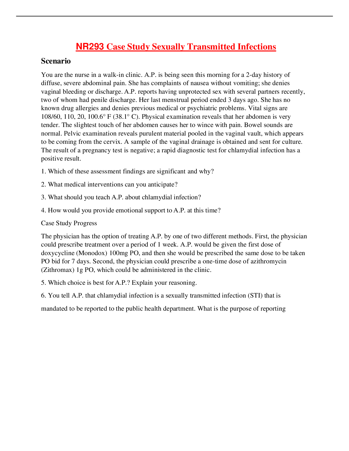 *NURSING > CASE STUDY > NR293/NR 293 Pharmacology For Nursing Practice Case Study Sexually Transmitted Infections