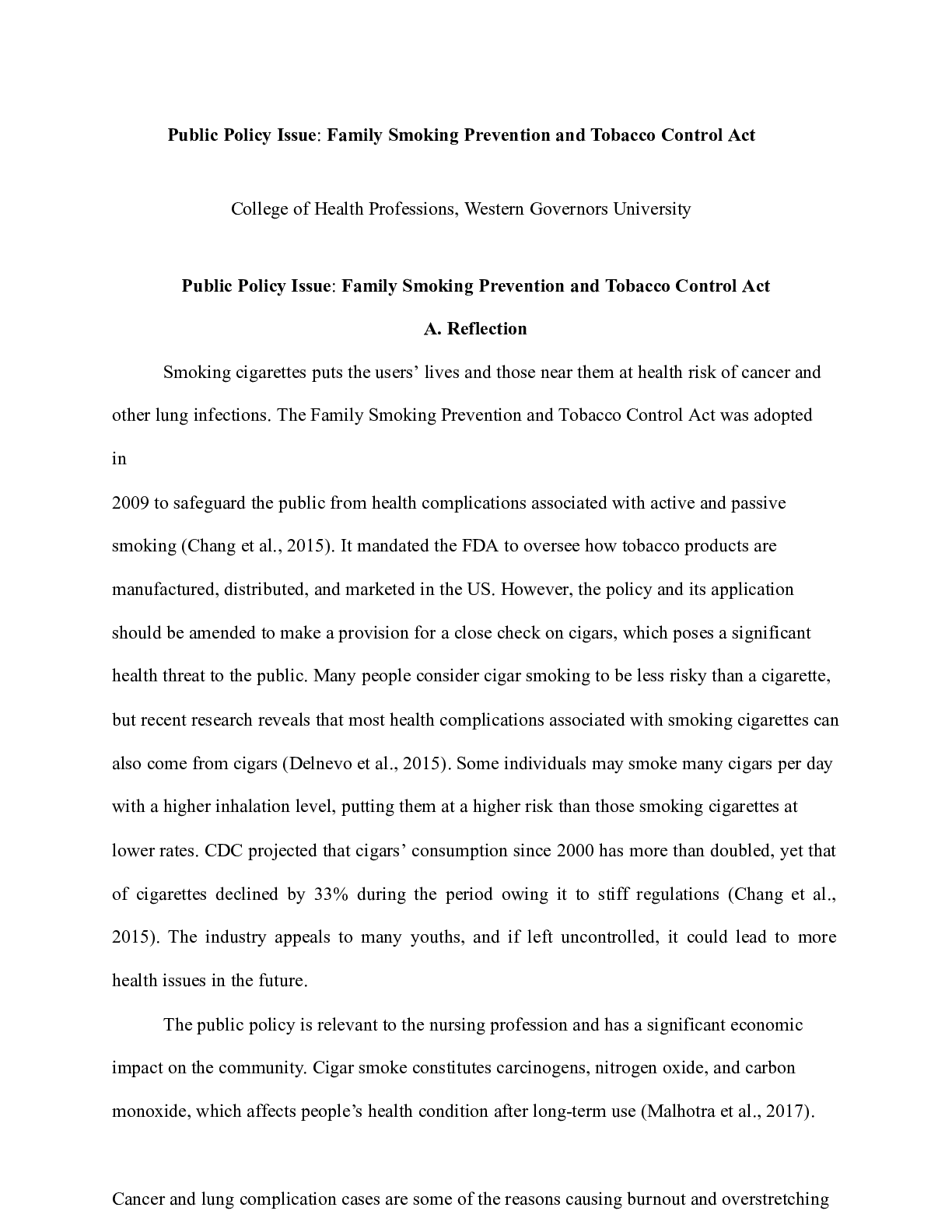 Business > CASE STUDY > Policy 2.doc Public Policy Issue: Family Smoking Prevention and Tobacco Control Act Co