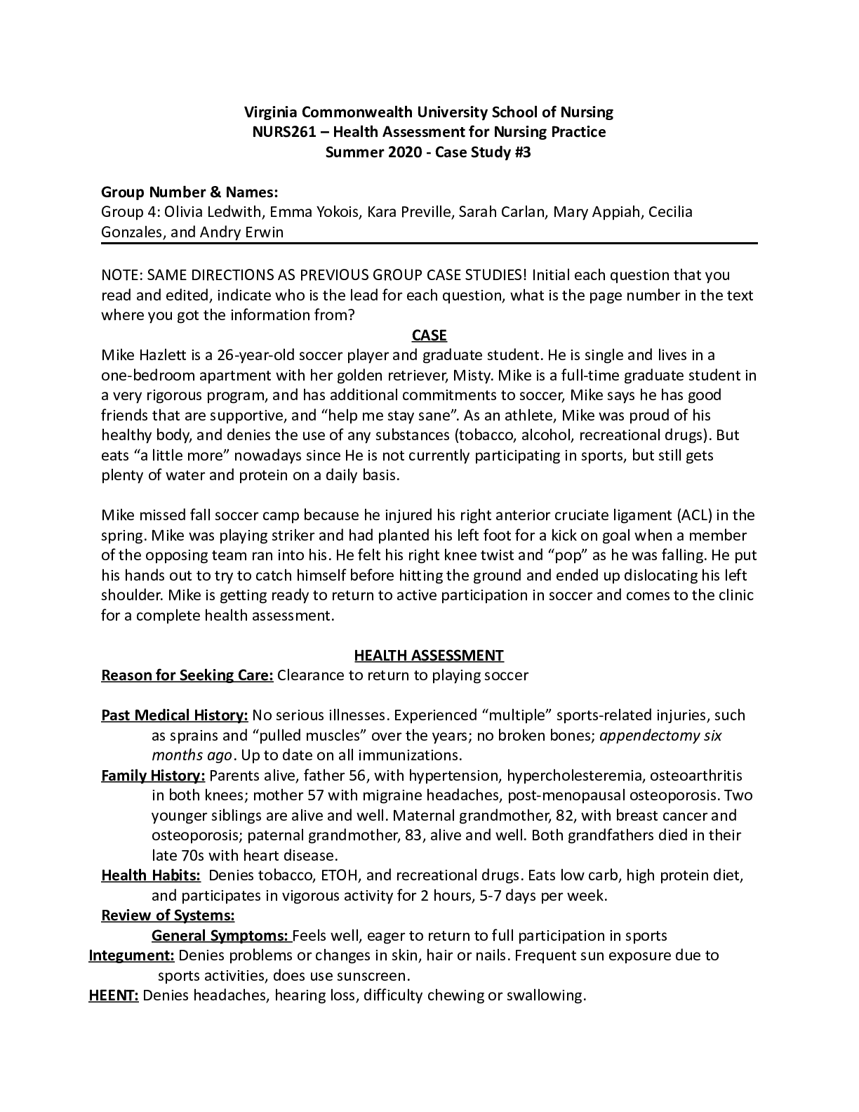 Health Care > CASE STUDY > NURS261 – Health Assessment for Nursing Practice Case Study 3 2020 final summer