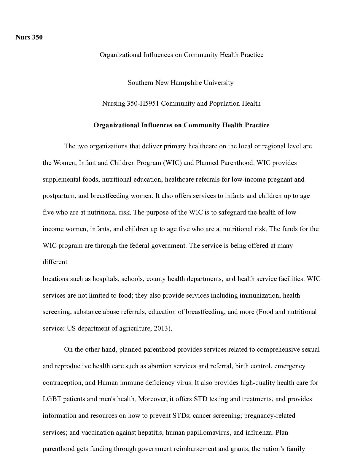 Business > CASE STUDY > Comunity Health Practice.docx Nurs 350 Organizational Influences on Community Health P