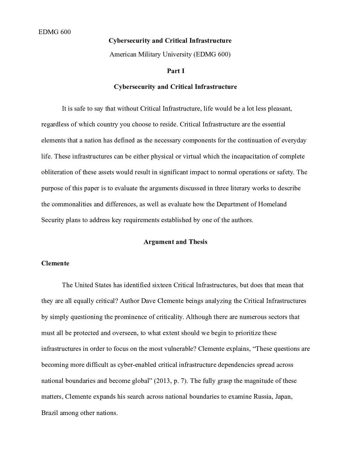 Business > CASE STUDY > EDMG600Weeks1.docx EDMG 600 Cybersecurity and Critical Infrastructure American Military