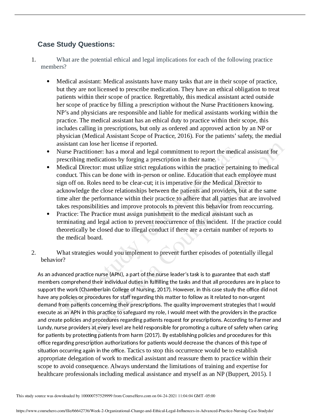 *NURSING > CASE STUDY > NR 506 NP Week 2 Discussion: Organizational Change and Ethical-Legal Influences in Advanced Practice Nursing Case Study/Health Care Policy (Spring 2021) 100% CORRECT