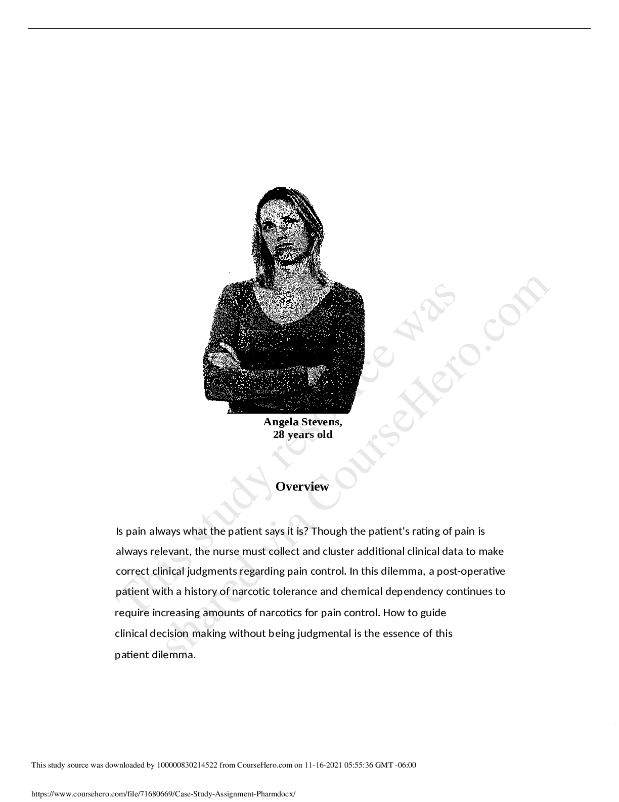 *NURSING > CASE STUDY > Case Study PATIENT Dilemma, Pain Control or Drug Seeking Behavior, STUDENT Worksheet, Angela Stevens, 28 years old, (Latest 2021) Correct Study Guide, Download to Score A