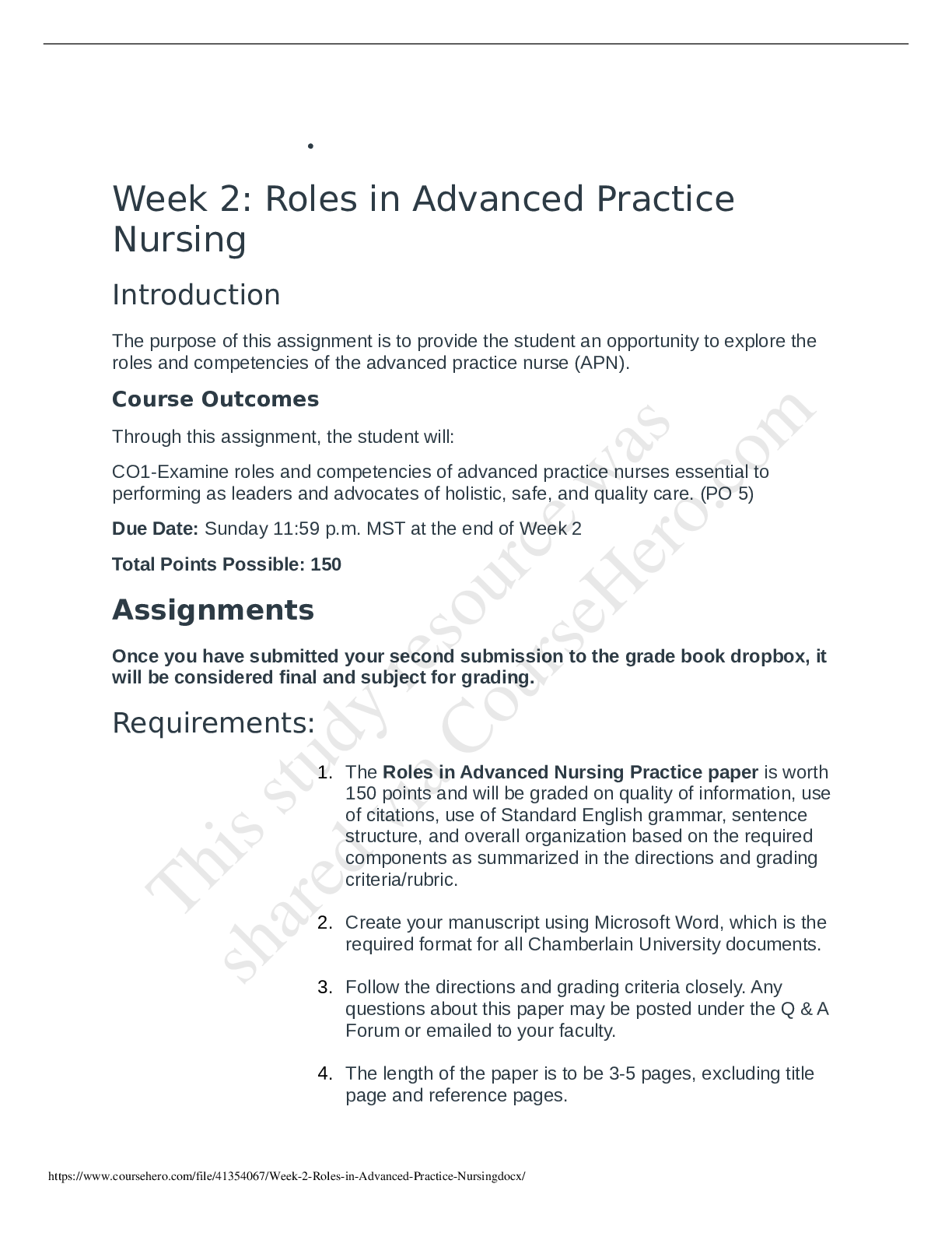 *NURSING > CASE STUDY > Week 2- Roles in Advanced Practice Nursing