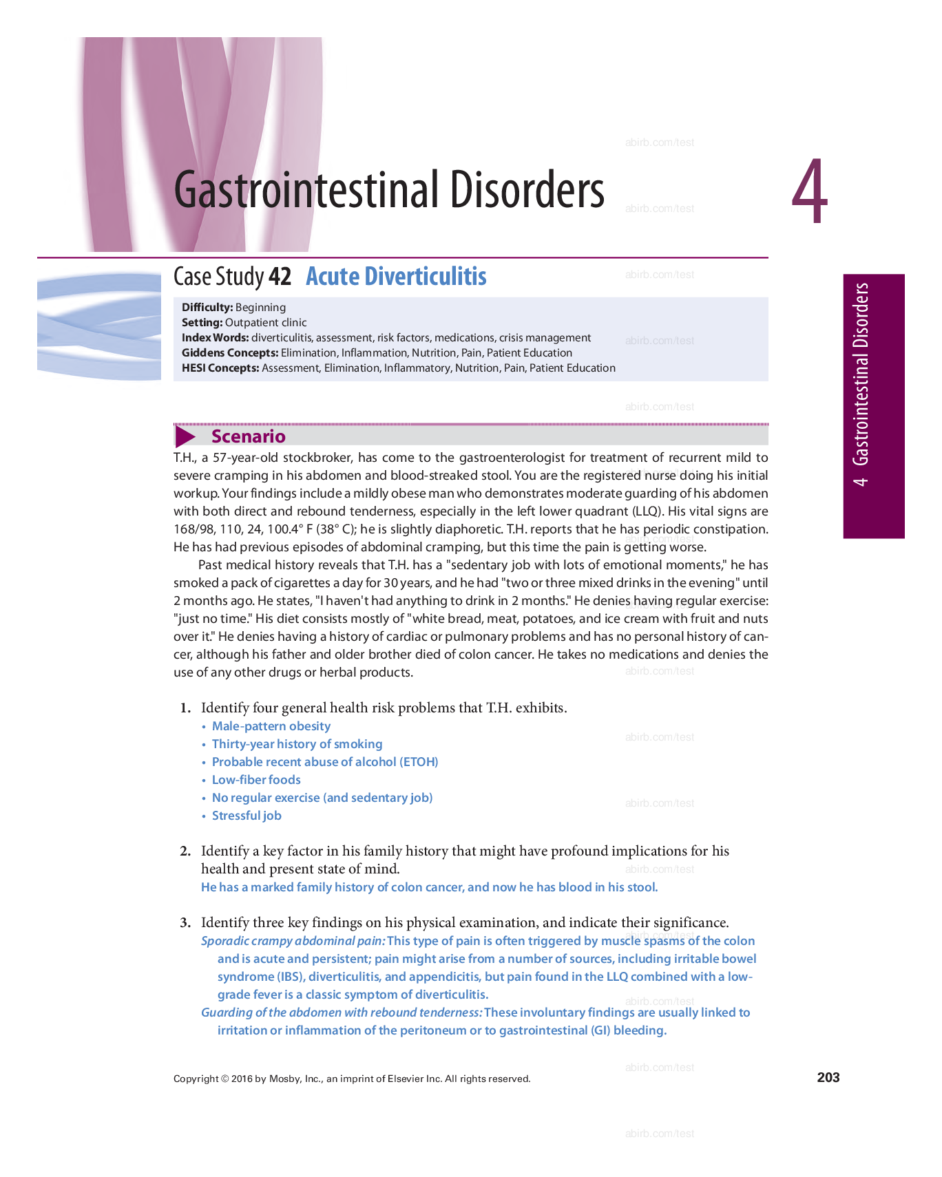 *NURSING > CASE STUDY > Chapter 04 Gastrointestinal Disorders- Winningham’s Critical Thinking Cases in Nursing 6th Edition Test Bank