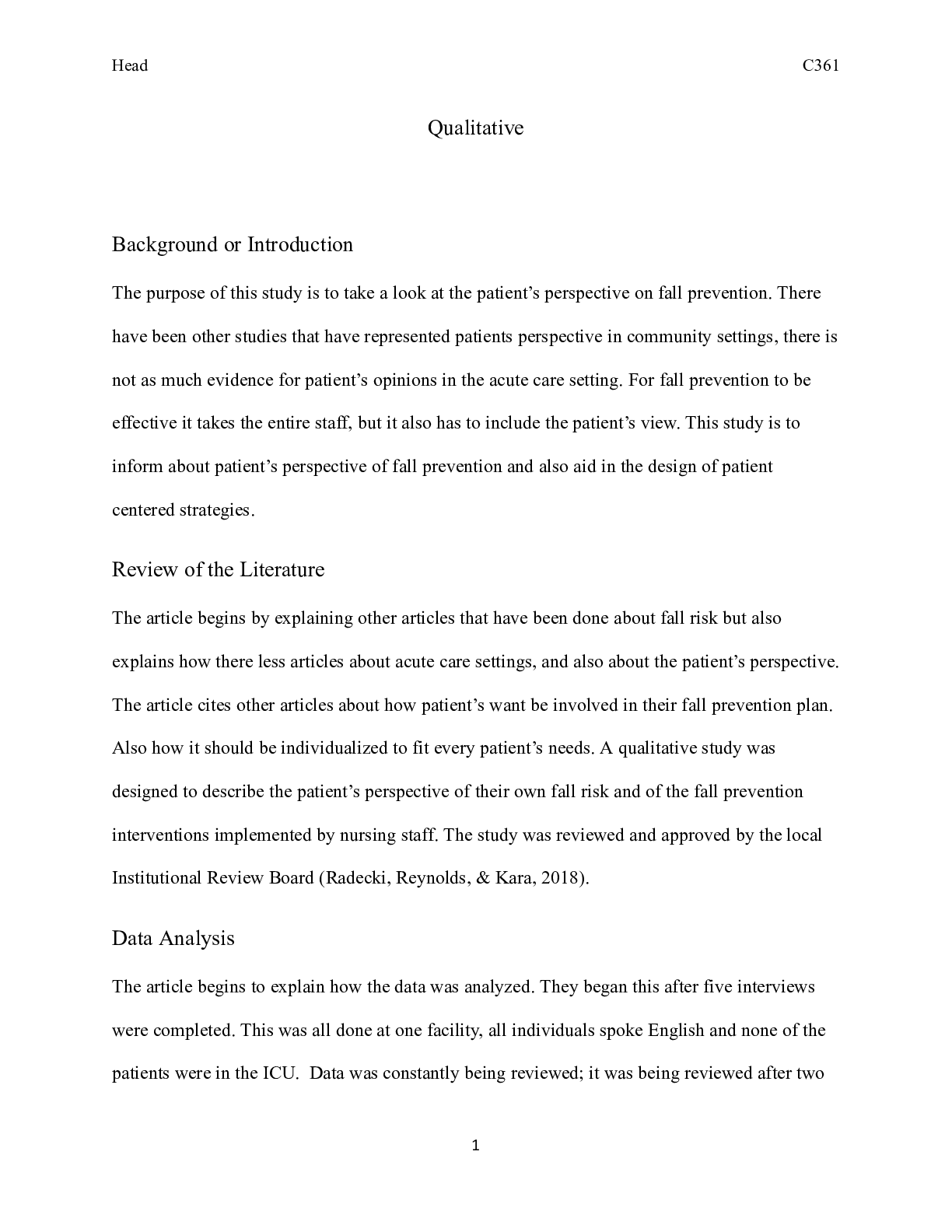 Business > CASE STUDY > qualitive paper.docx Qualitative Background or Introduction The purpose of this study