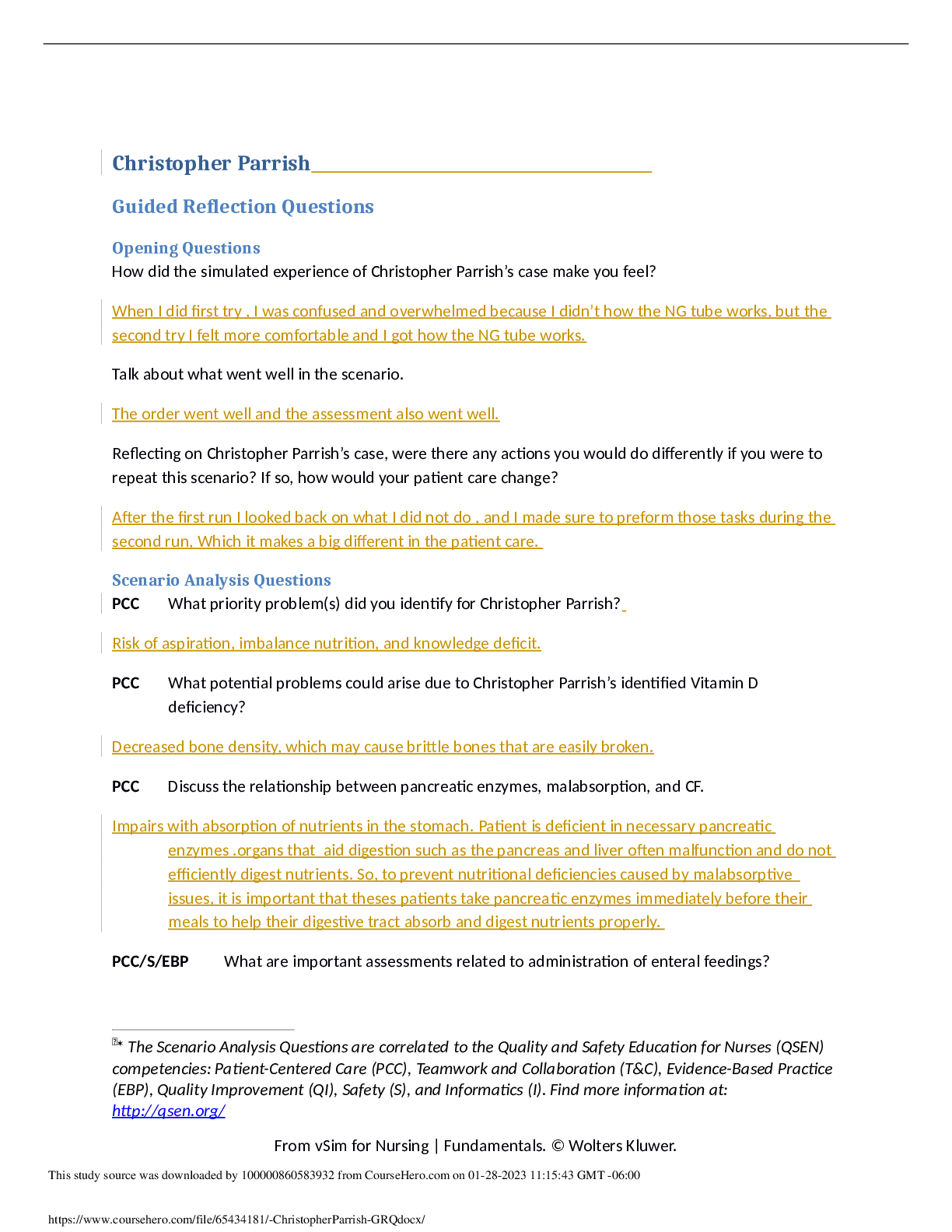 *NURSING > CASE STUDY > Christopher Parrish Guided Reflection Questions and Answers, rated 100% score.