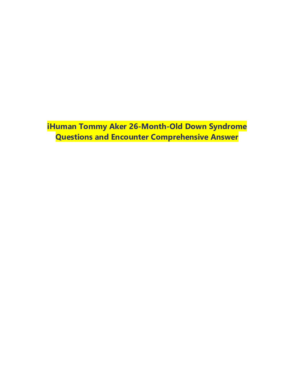 Health Care > CASE STUDY > iHuman Tommy Aker 26-Month-Old Down Syndrome Questions and Encounter Comprehensive Answer