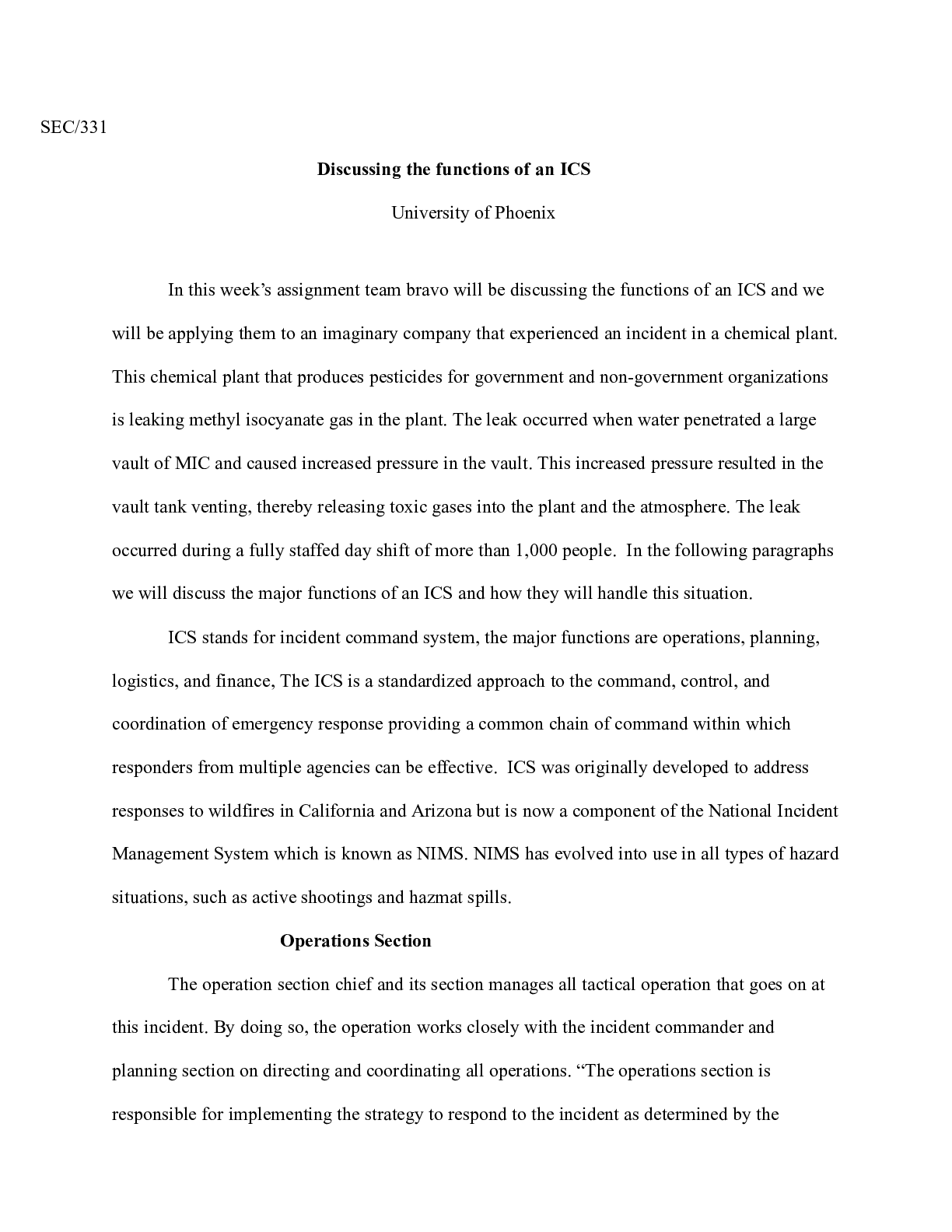 Business > CASE STUDY > Sec331 Wk 3 Team Assignment.docx SEC/331 Discussing the functions of an ICS Universit