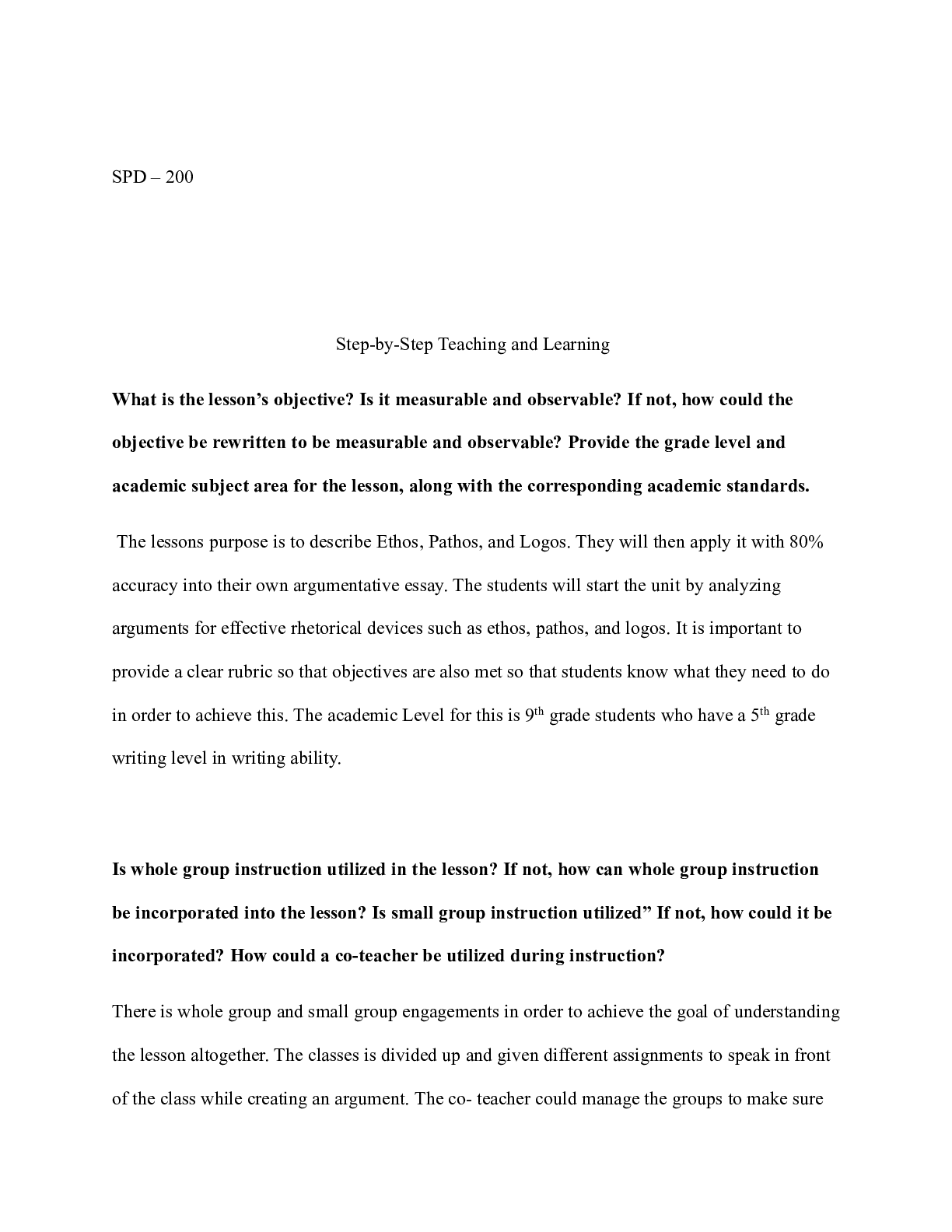 Business > CASE STUDY > teach.docx SPD “ 200 Step-by-Step Teaching and Learning What is the lesson™s object