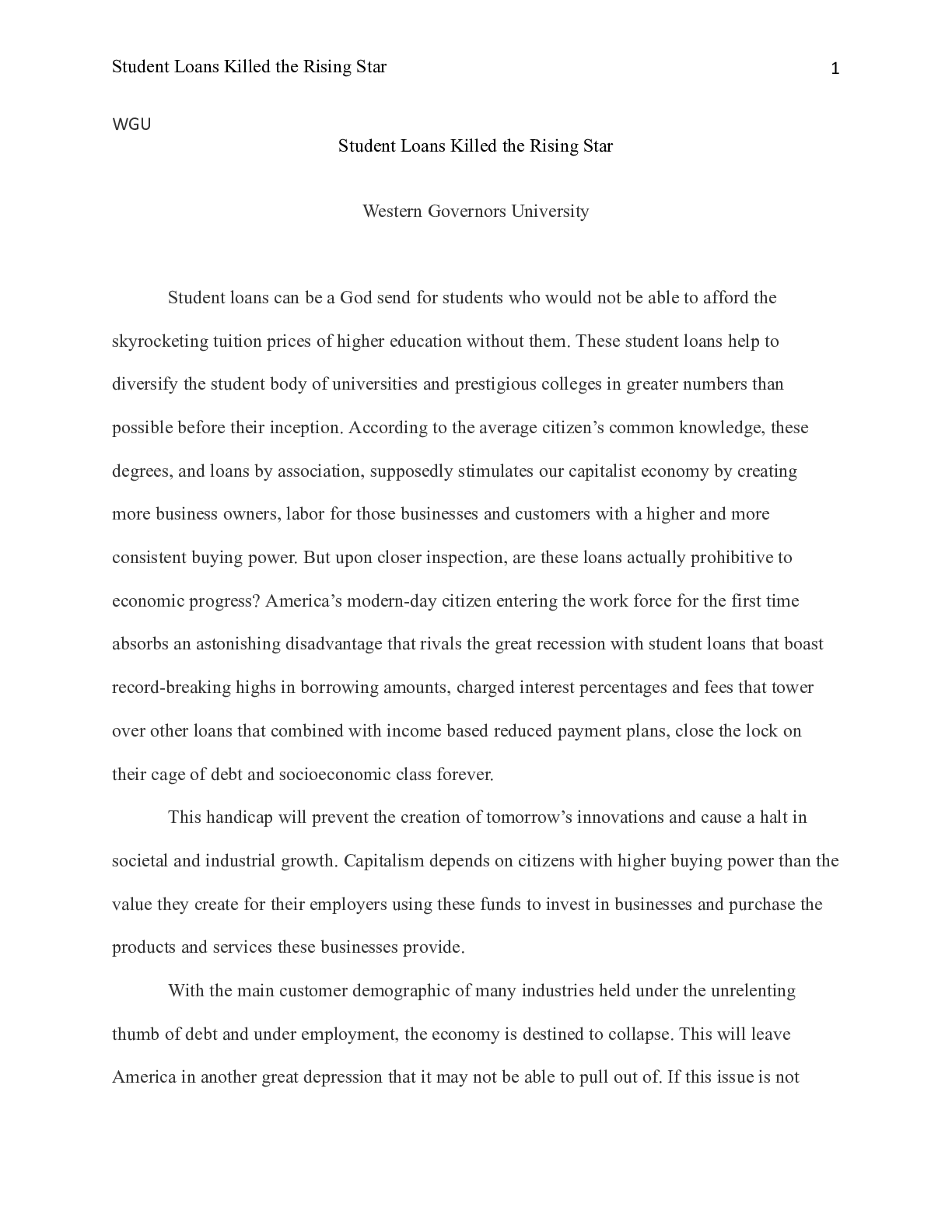Business > CASE STUDY > TASK2.docx WGU Student Loans Killed the Rising Star Western Governors University Stud
