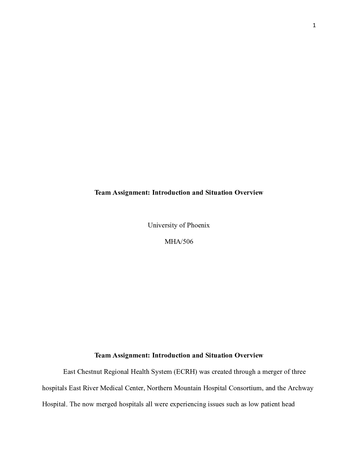 Business > CASE STUDY > Team_1_Week_2_Paper__Final_Draft_.docx Team Assignment: Introduction and Situation Over