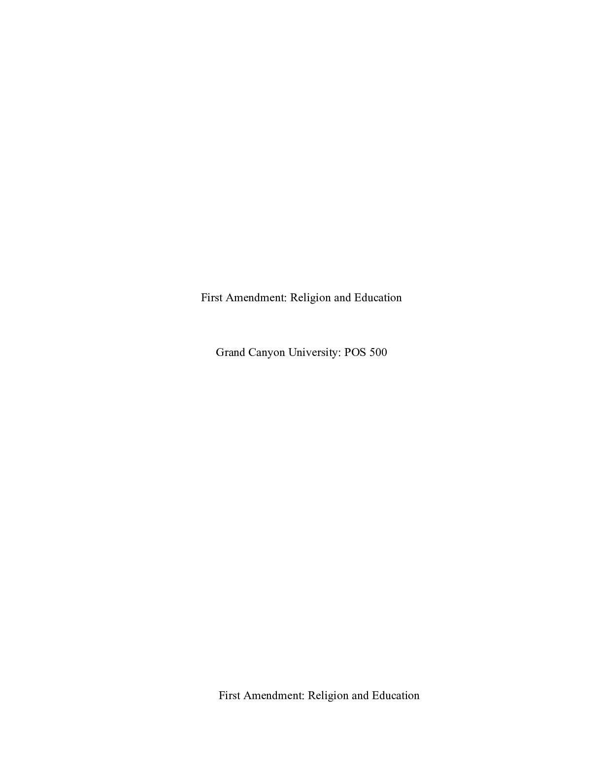 Business > CASE STUDY > POS_500First_Amendment.docx First Amendment: Religion and Education Grand Canyon Unive