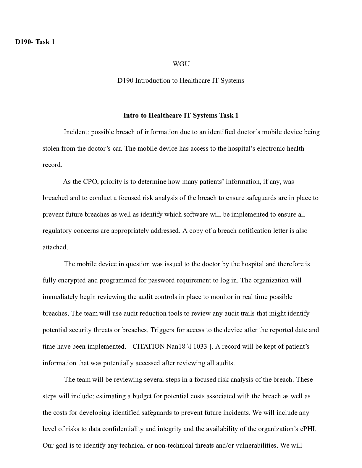 Business > CASE STUDY > D190_Task_1.docx D190- Task 1 WGU D190 Introduction to Healthcare IT Systems Intro t