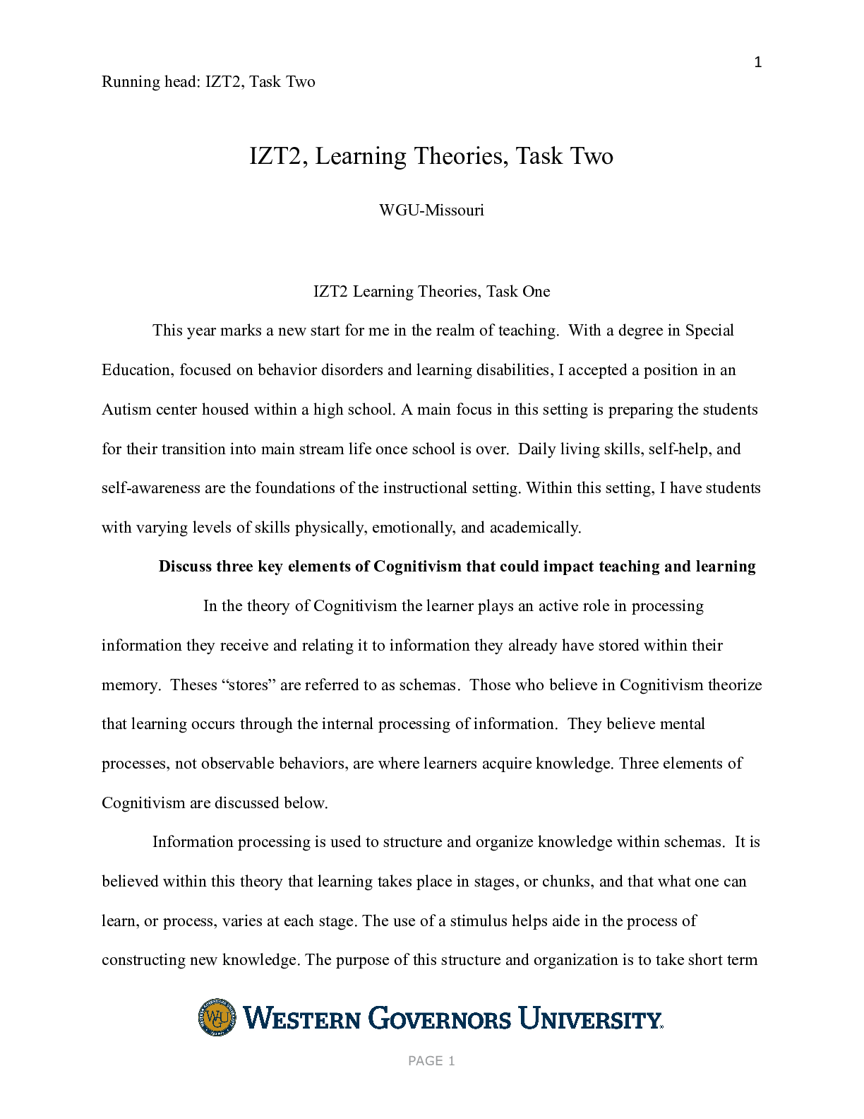 Business > CASE STUDY > IZT2_Learning_Theories_Task2.docx IZT2, Learning Theories, Task Two WGU-Missouri IZT2