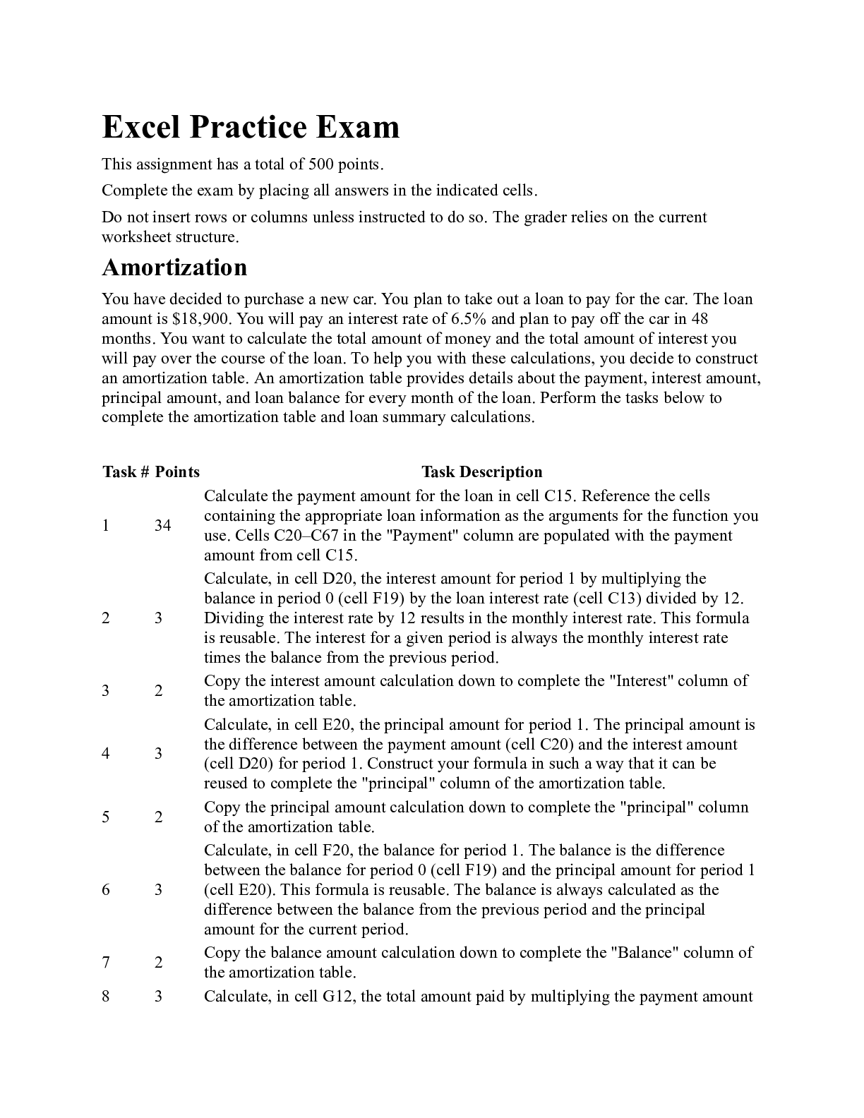 Business > CASE STUDY > Excel Practice Examnotes.docx Excel Practice Exam This assignment has a total of 500 poi