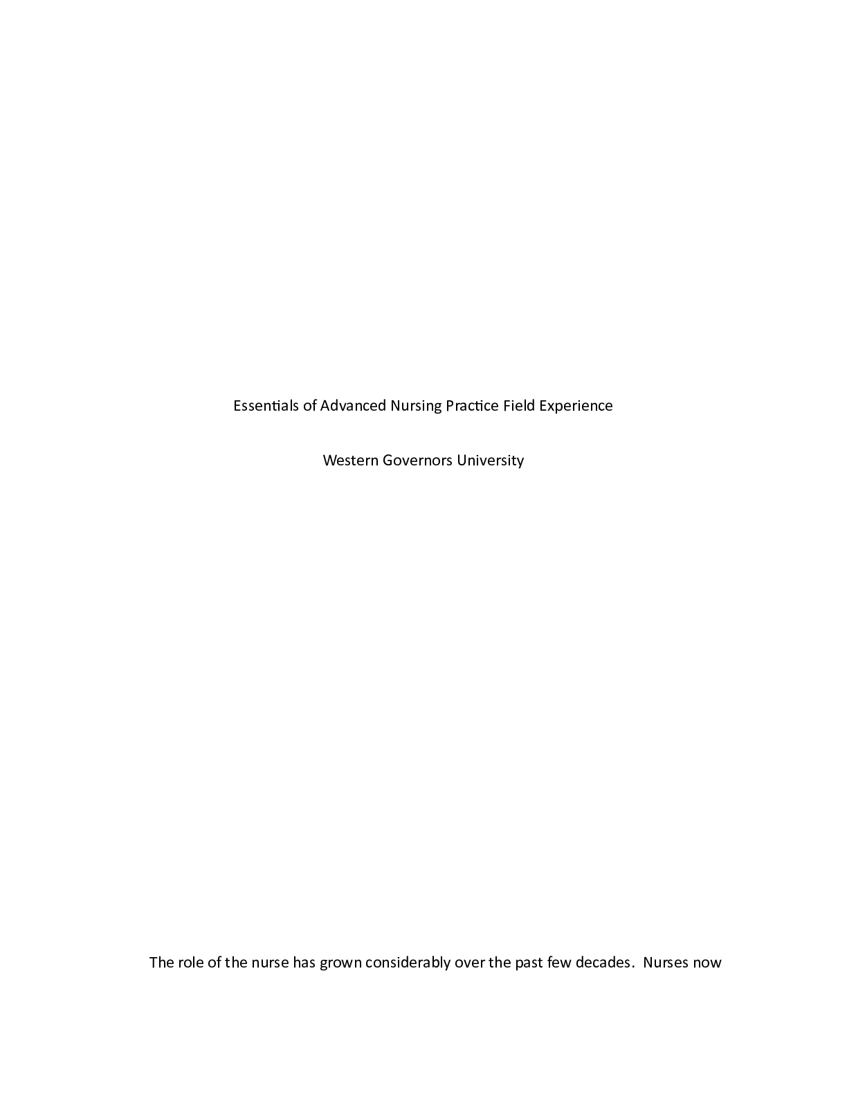 Business > CASE STUDY > Essentials of Advanced Nursing Practice Field Experience.docx Essentials of Advanced Nu