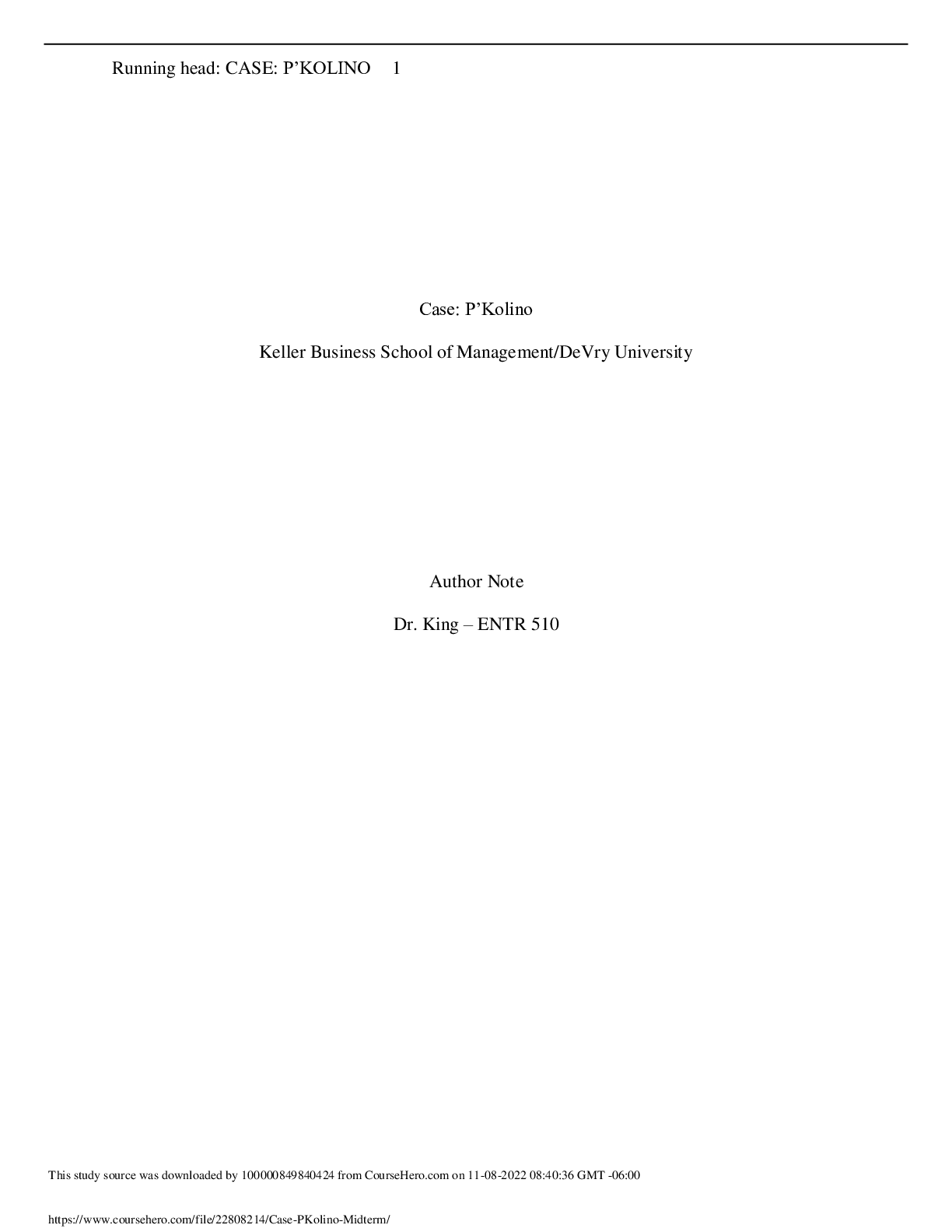 Business > CASE STUDY > ENTR 510 Week 5 Midterm Paper → Case Study – P’Kolino (Already GRADED A)