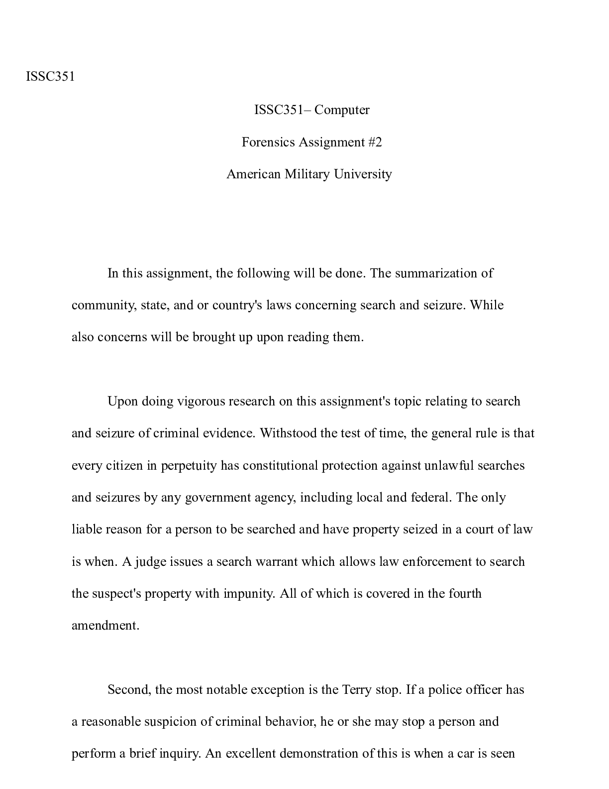 Business > CASE STUDY > Forensics Assignment2.docx ISSC351 ISSC351– Computer Forensics Assignment #2 American