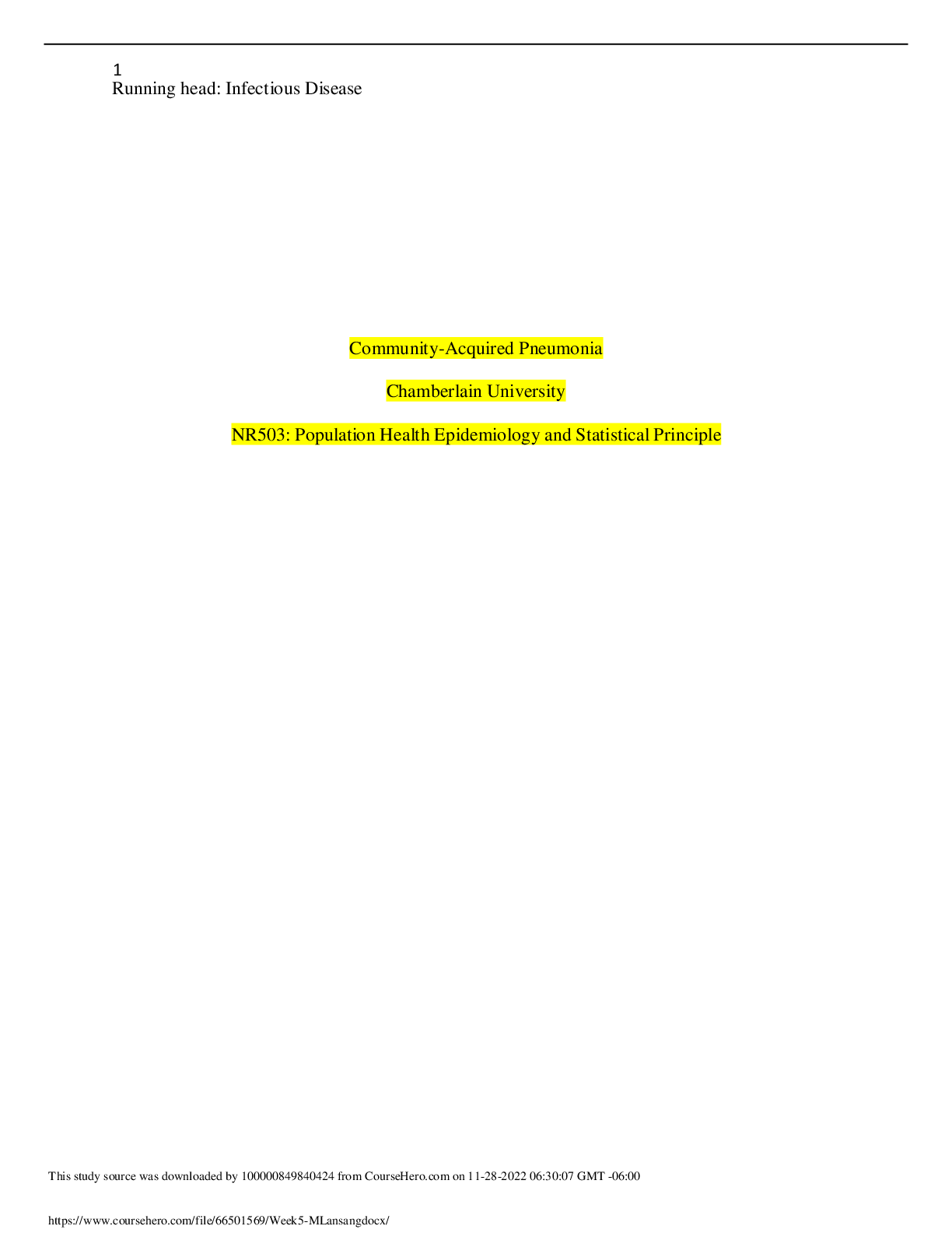 *NURSING > CASE STUDY > NR 503 Week 5 Assignment: Infectious Disease Paper – Community Acquired Pneumonia