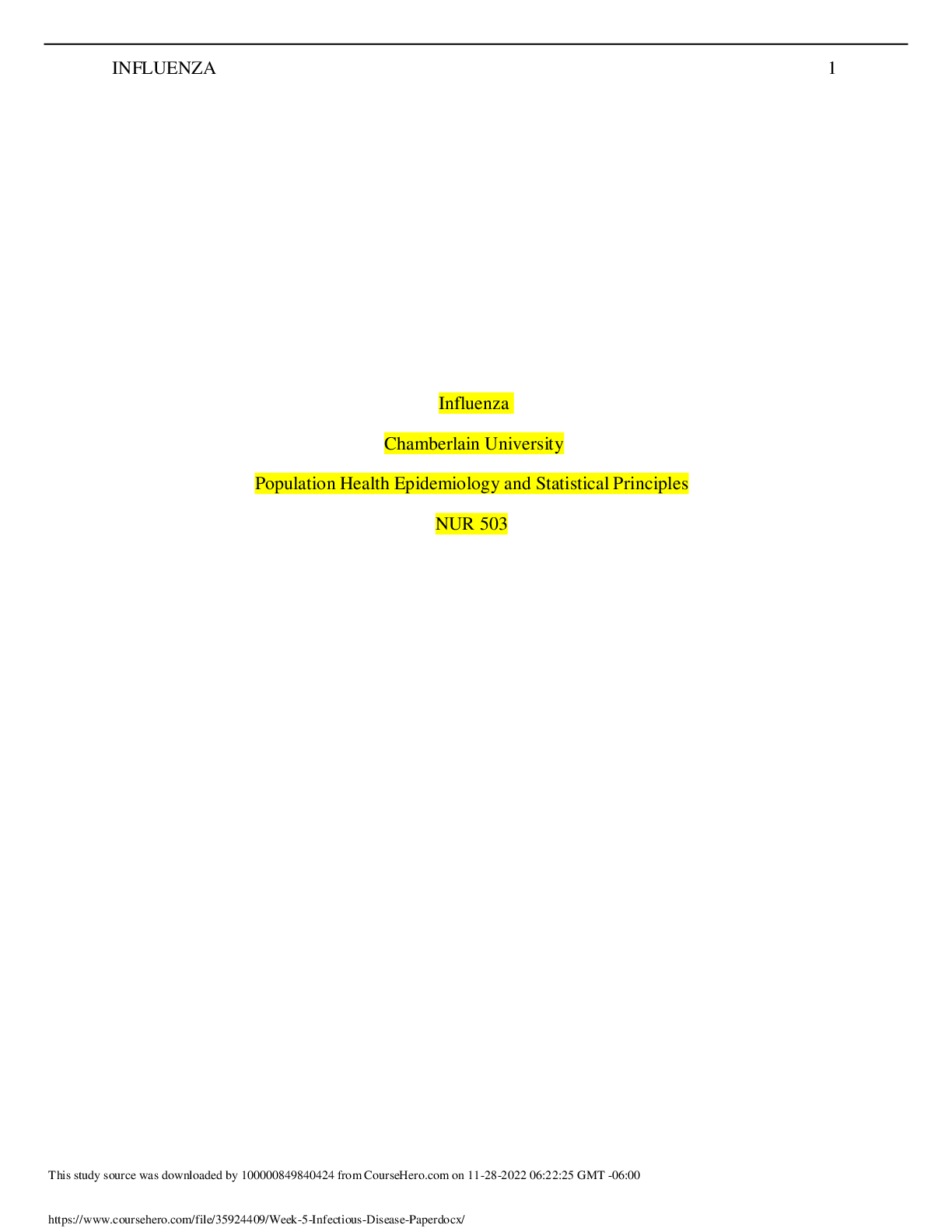 *NURSING > CASE STUDY > NR 503 Week 5 Assignment: Infectious Disease Paper – Influenza